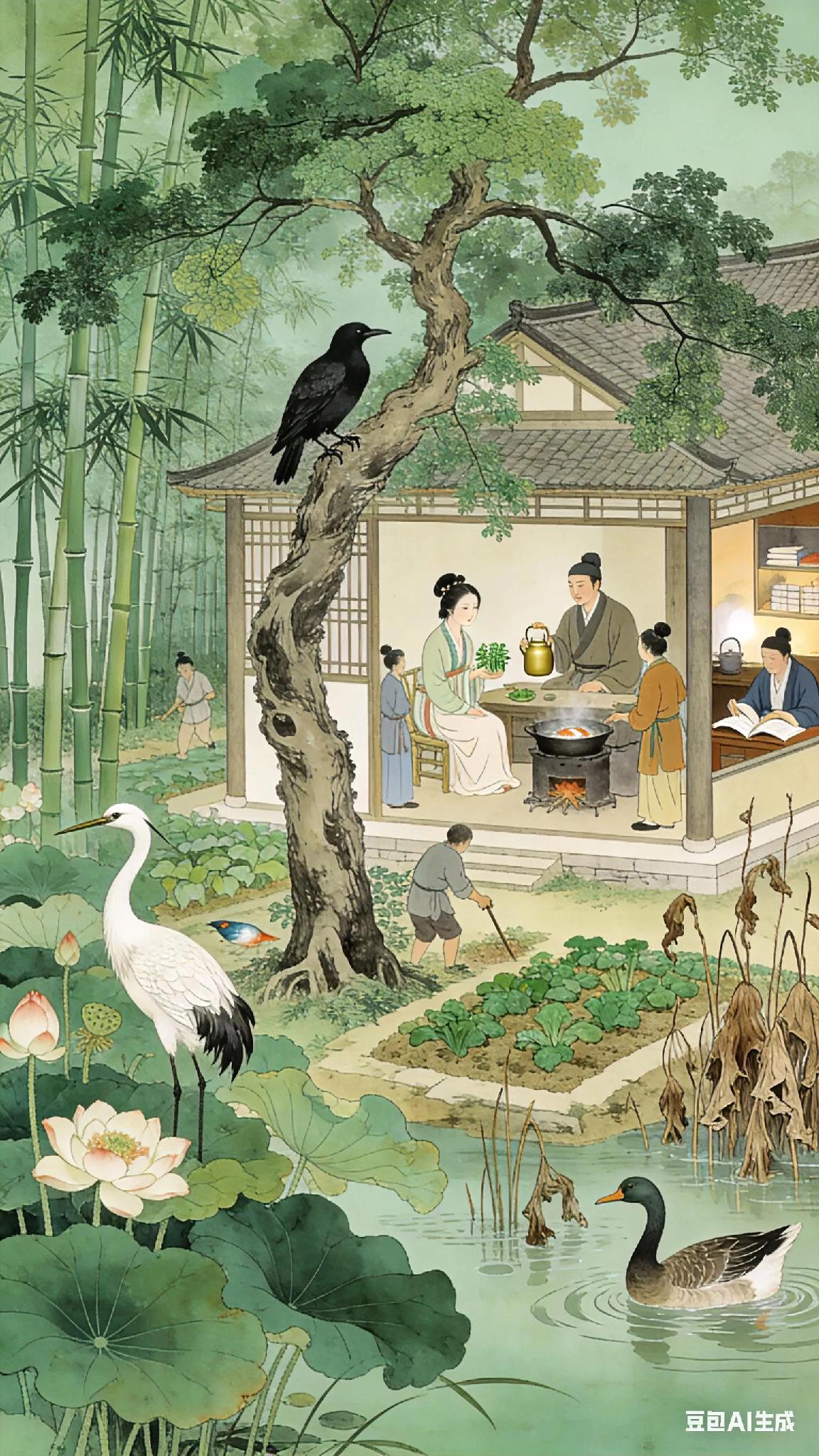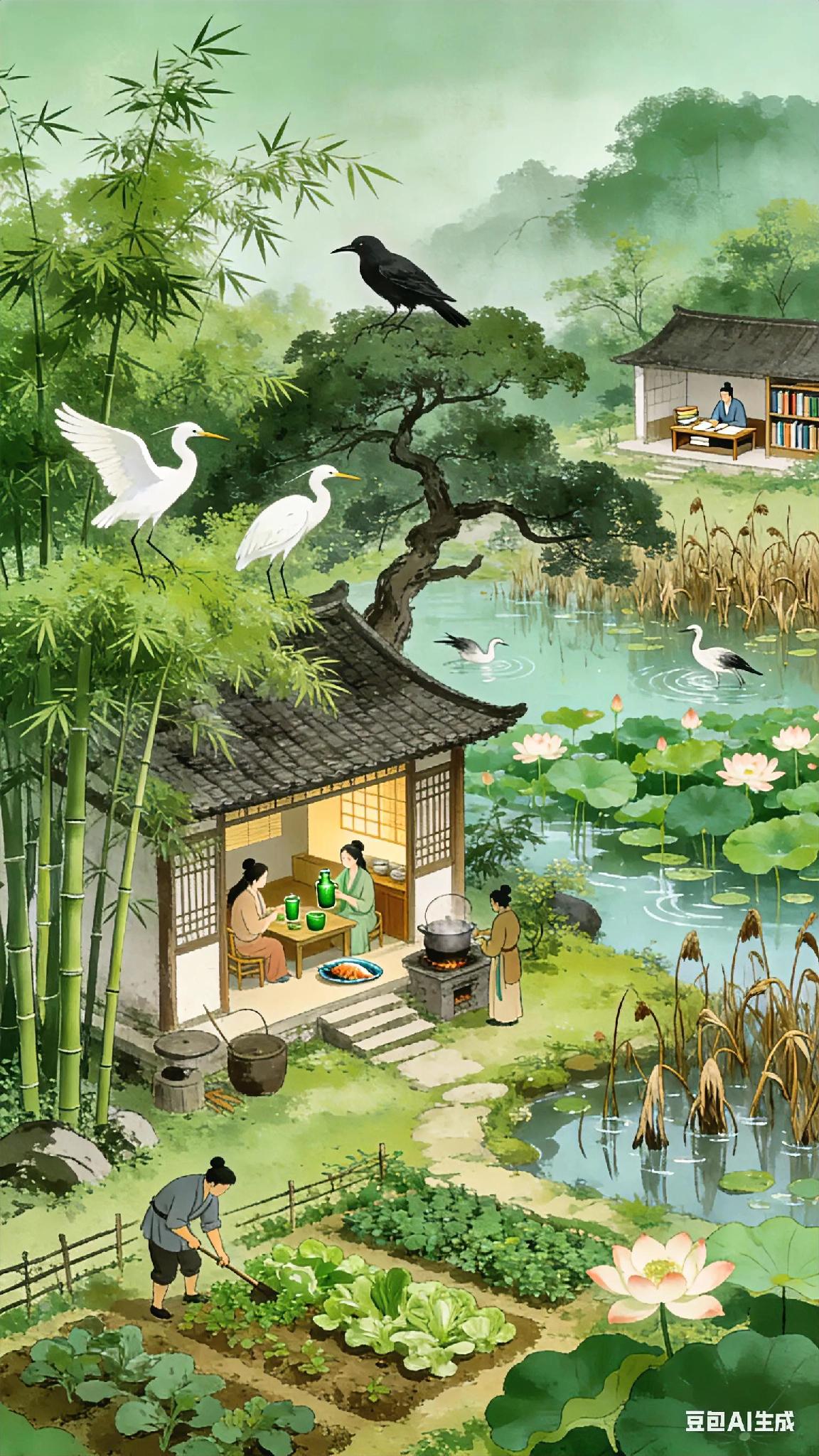 《双调》折桂令隐居、刘庭信。 护吾庐绿树扶疏。 竹坞独居, 举目须臾。 鹭宿芙蕖, 乌居古木, 凫浴枯蒲。 夫与妇壶沽绿醋, 主呼奴釜煮鲈鱼。 俗物俱无, 蔬圃锄蔬, 书屋读书。 《隐居小记》 绿荫掩映着我的草庐,竹林深处独居,抬眼便是悠然景致。 白鹭栖在荷塘,乌鸦宿于古木,野鸭嬉戏在枯蒲丛中。 夫妻对饮家酿米酒,唤仆人烹煮鲜嫩鲈鱼。 远离尘世烦扰,只在菜园挥锄种菜,静坐书斋捧卷而读——这便是最朴素的隐居之乐。 古诗词 你记得最深的一首古诗词是什么 你最喜欢的一句古诗词是什么 林居闲咏 林泉闲意 半阙闲诗 花影诗 云庭诗 隐逸诗词