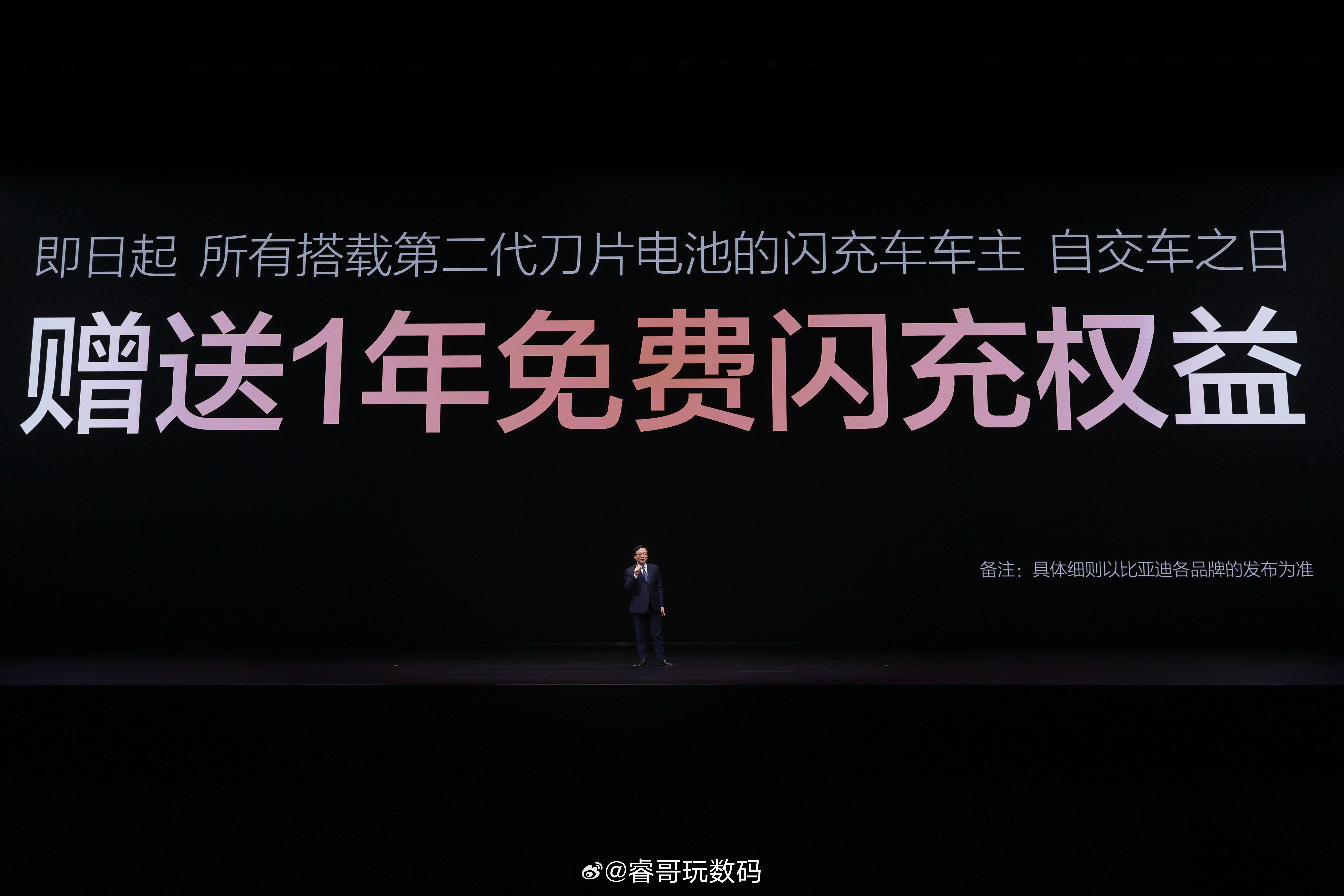 第二代刀片电池闪充车主自交车之日起,在全国闪充站可享受1年的免费闪充权益。