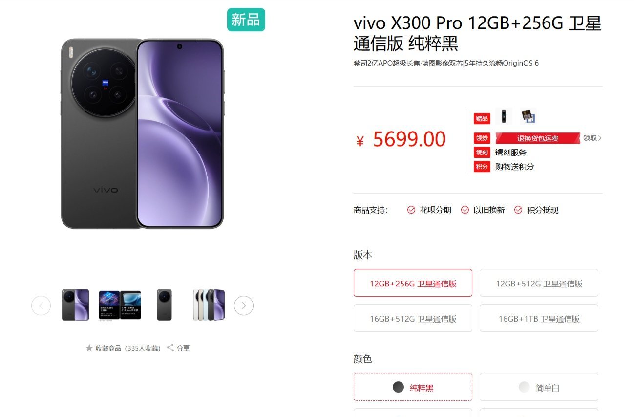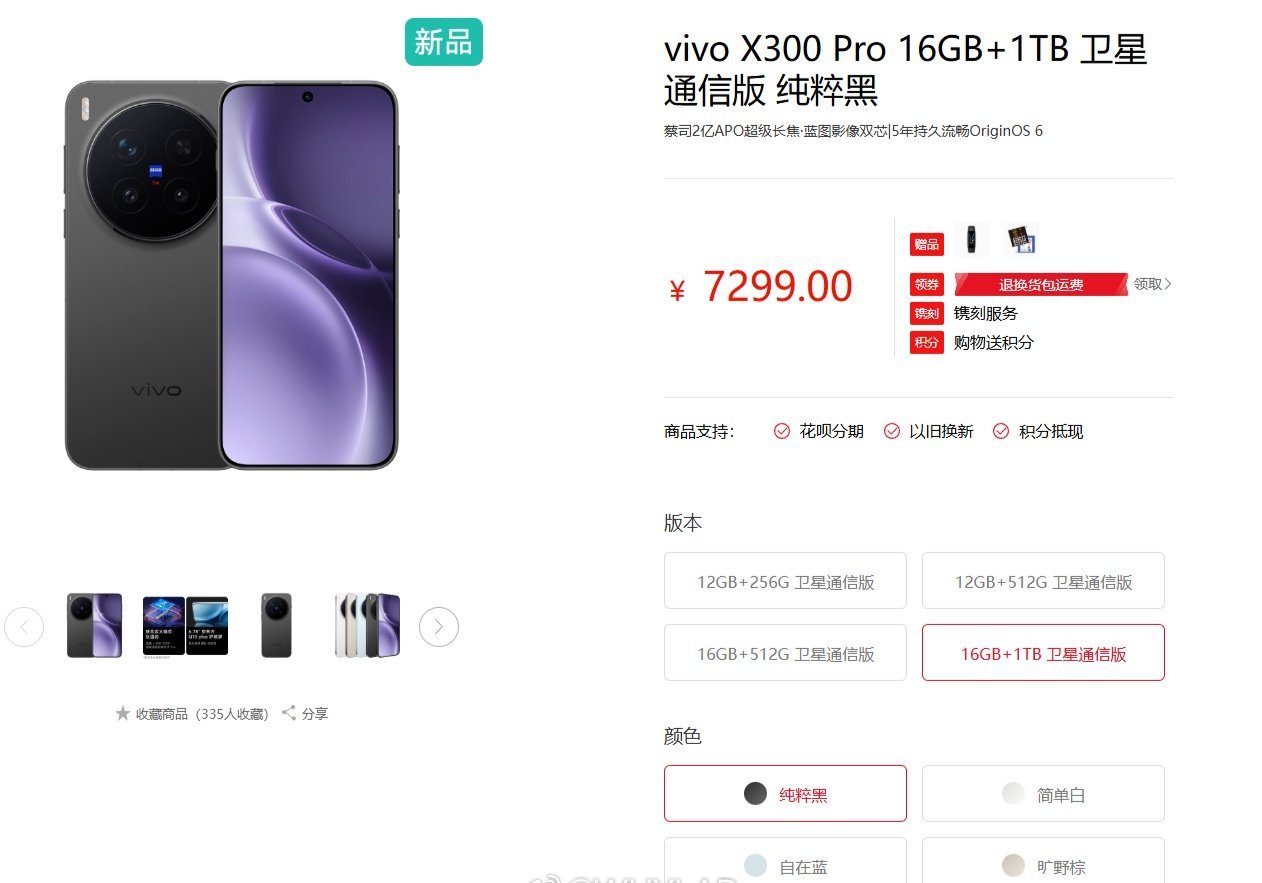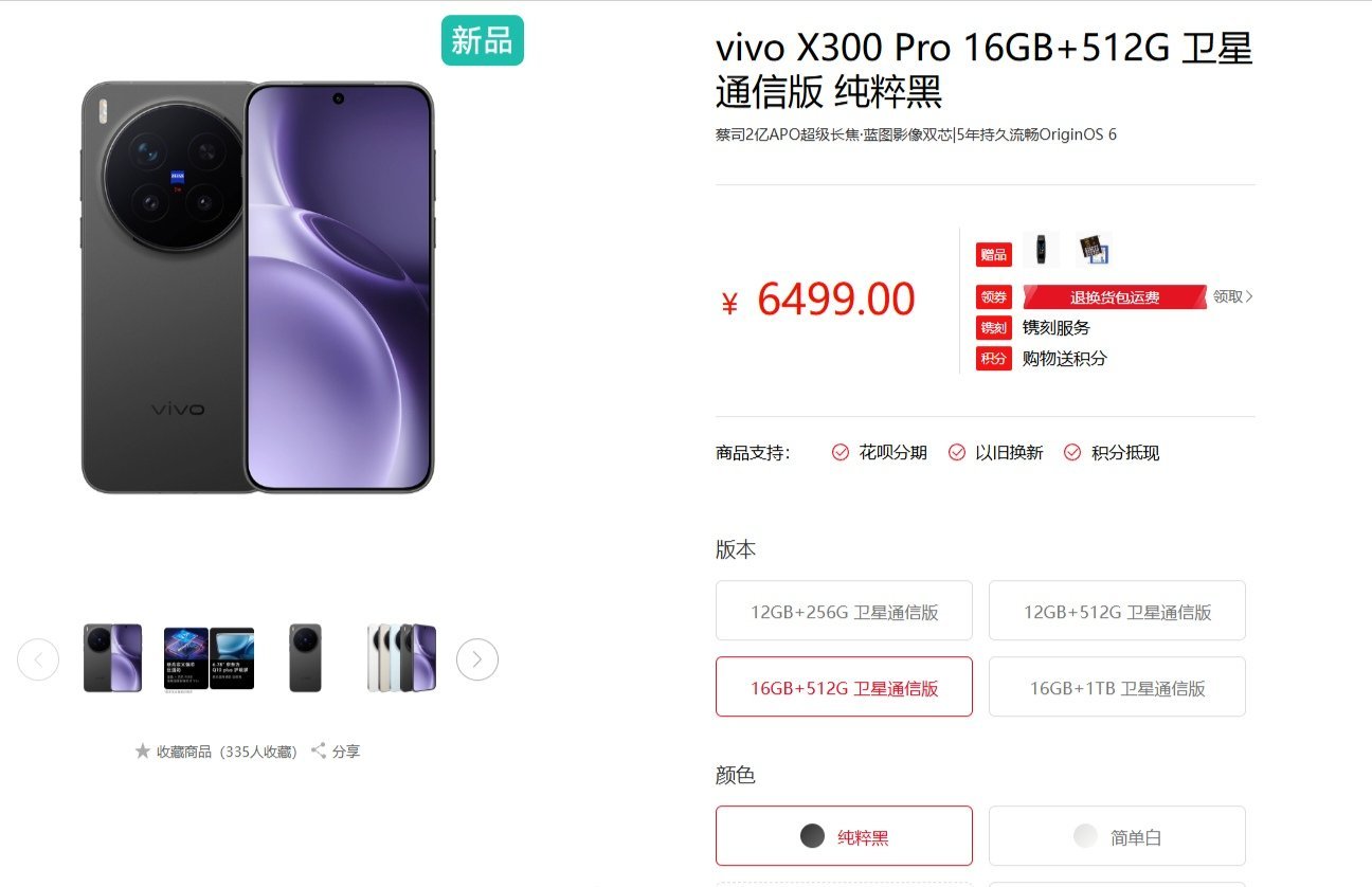 vivo X300 Pro 北斗卫星通信版上架官网,
