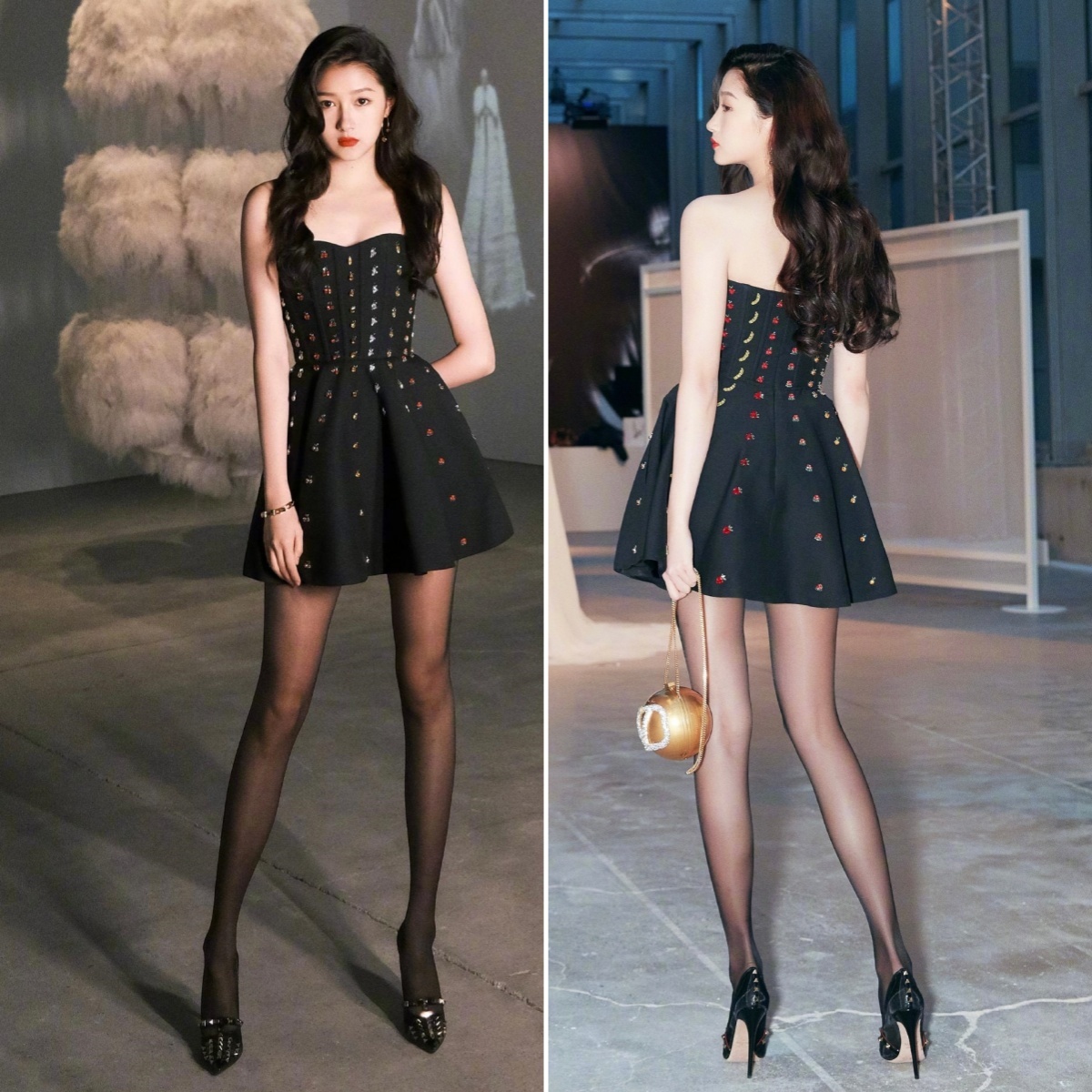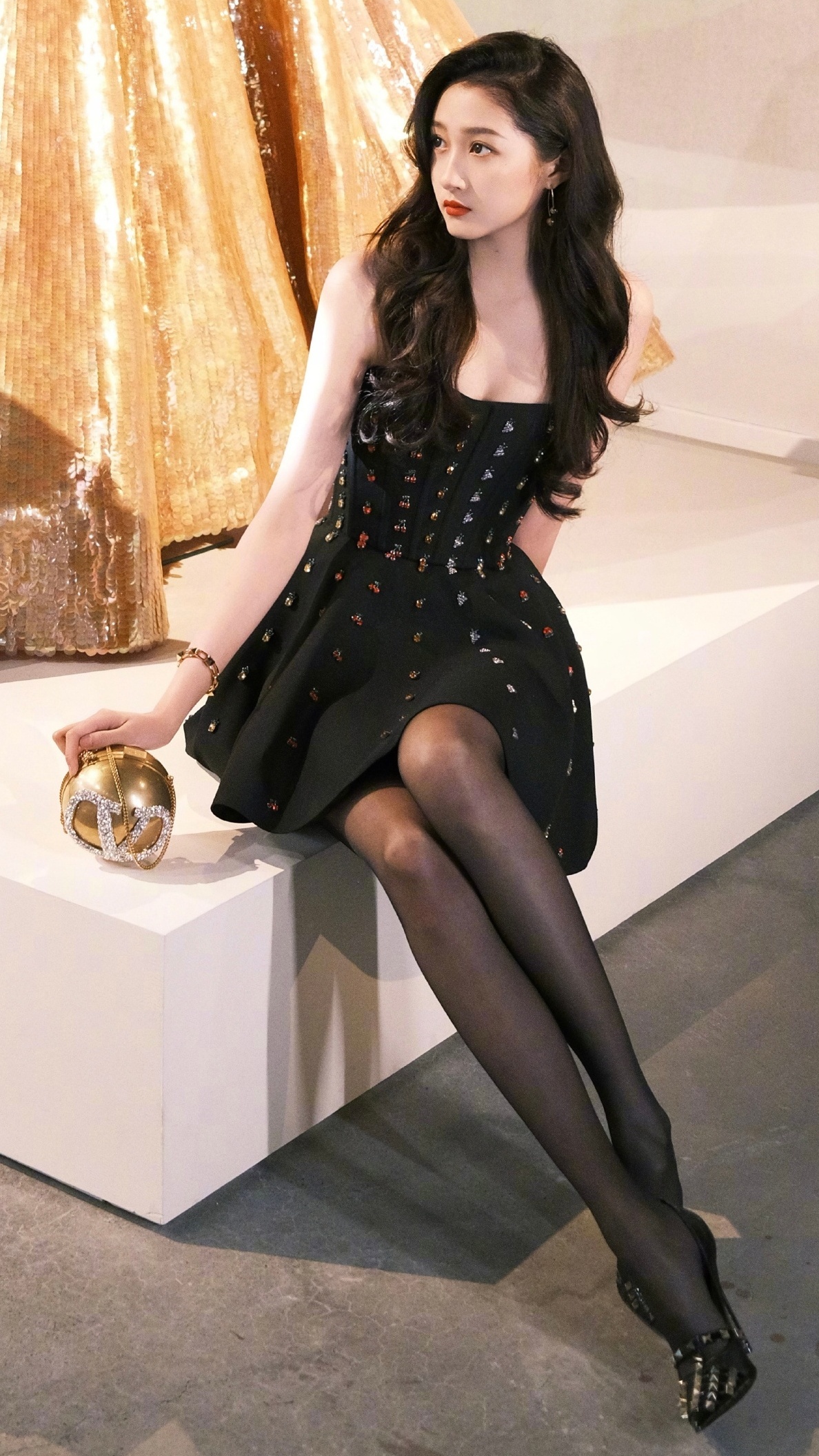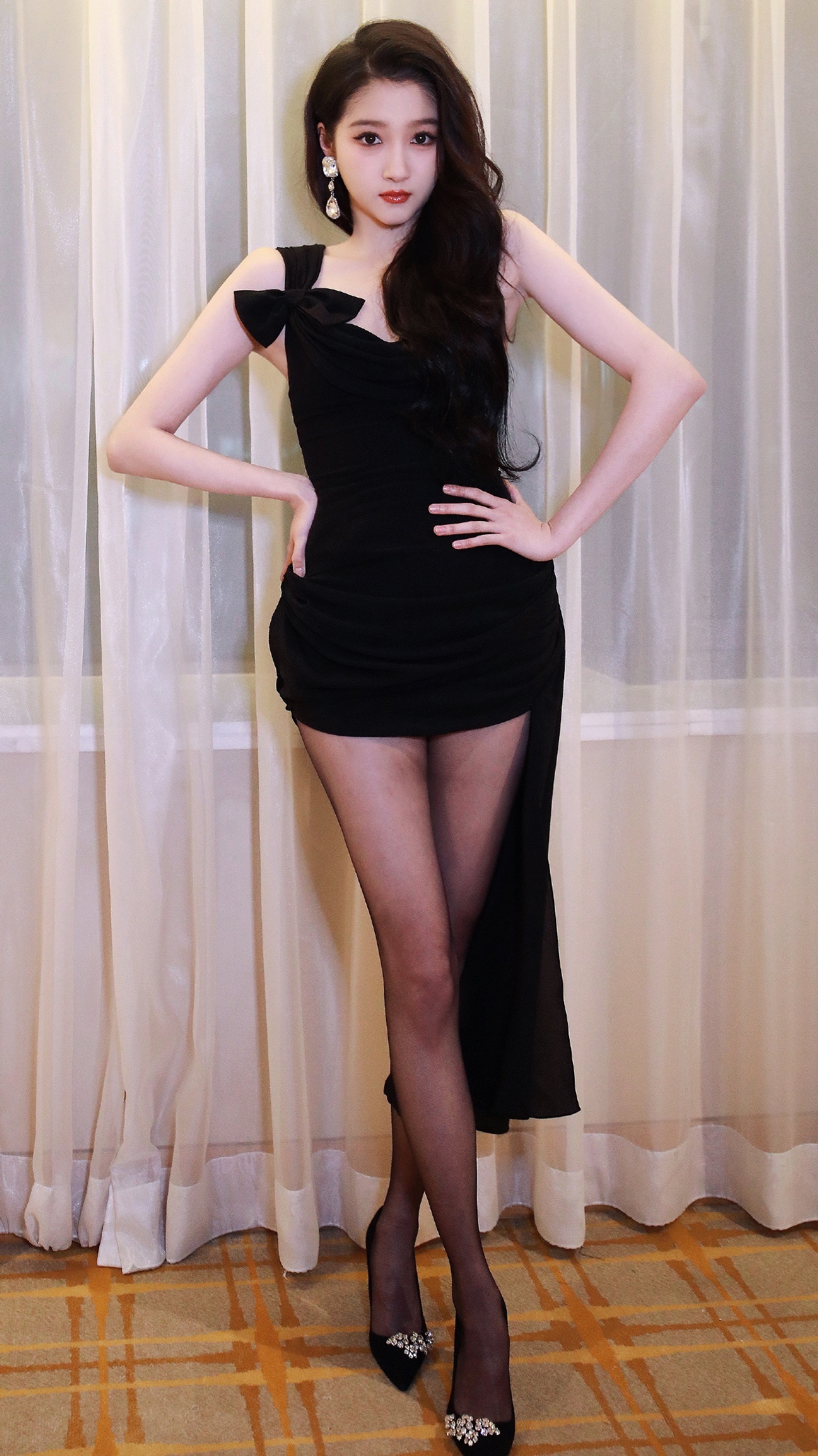 关晓彤,经典黑裙丝袜大长腿,这身材太吸睛了。关晓彤