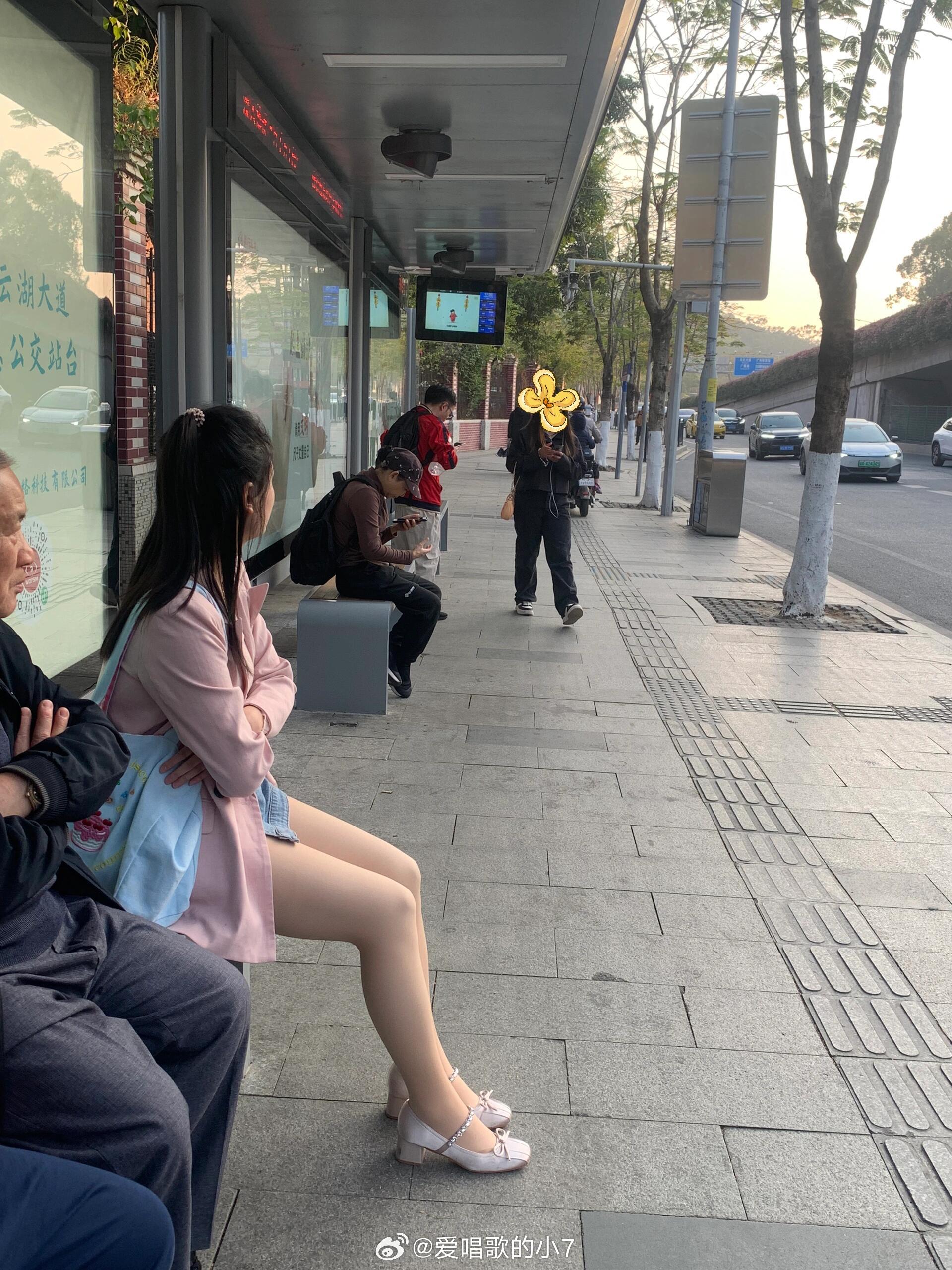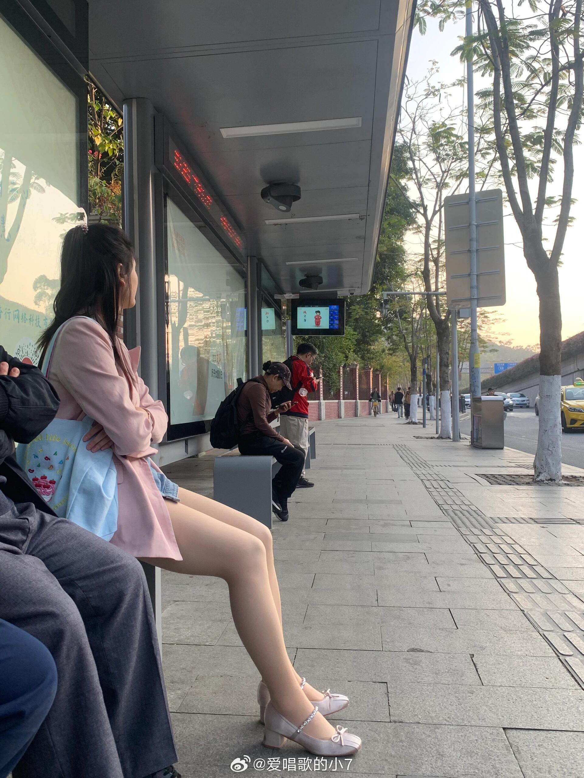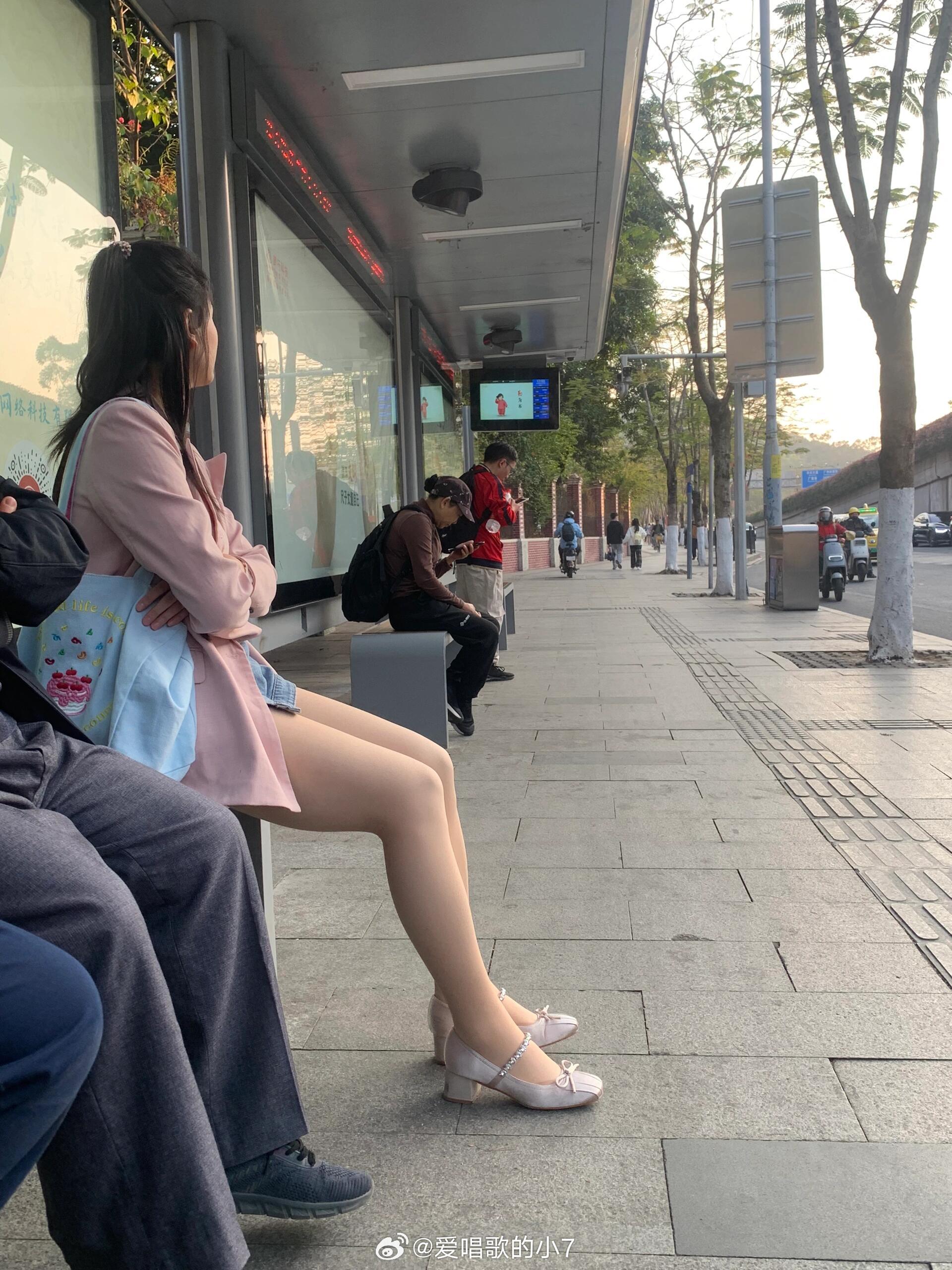 公交车站看到的!这姑娘姿势 就跟旁边大爷一摸一样[偷笑R]腿上肌肉线条流畅有力很好看,健康的感觉!这个袜裤太自然了,感觉是她自己的皮肤!经过小姐姐允许发出来的!