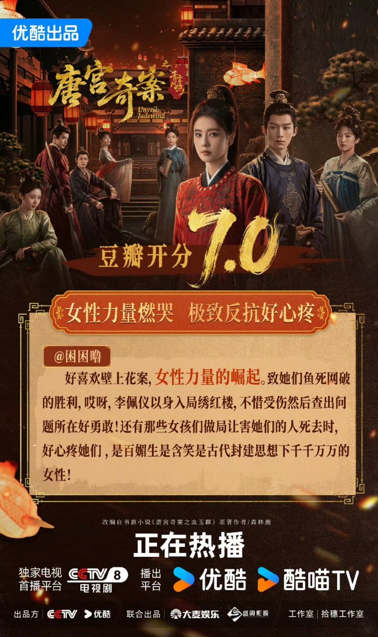 唐宫奇案2026开年古装悬疑开分7.0作为开年的第一部打到豆瓣7分的古装悬疑剧,全体演员和团队的用心之作值得被看见唐宫奇案2026首部古装悬疑开分7.0