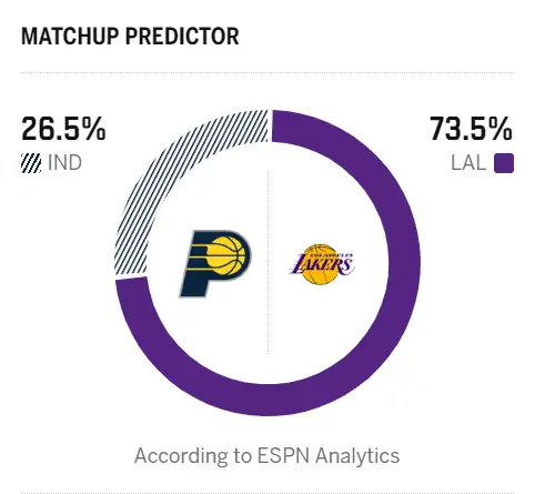 明日背靠背对阵步行者,湖人胜率高达73.5%。