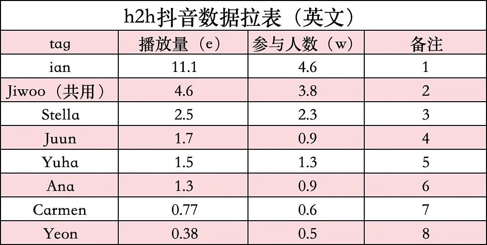 Hearts2Hearts成员抖音📊拉表JIWOO、CARMEN、YUHA、STELLA、JUUN、A-NA、IAN、YE-ON