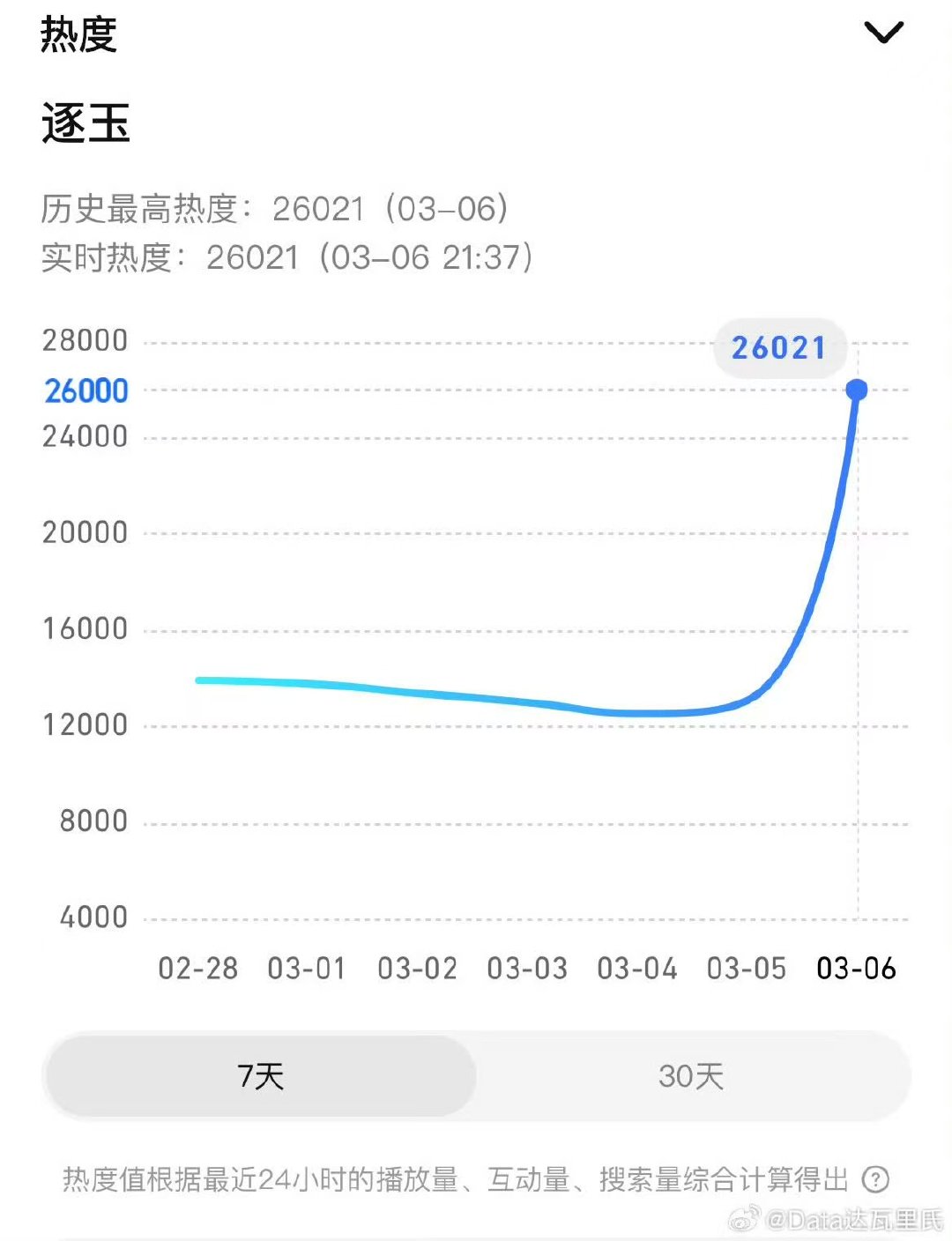 逐玉爆开逐玉首日爆开逐玉双平台热度,首日爆开了