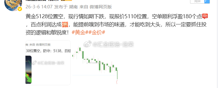 黄金5128位置空,现行情下跌至5096位置,多单止盈320个点,三百点利润落袋为安,市场里永远不缺机会,但筹码是你留在市场的门票黄金金价