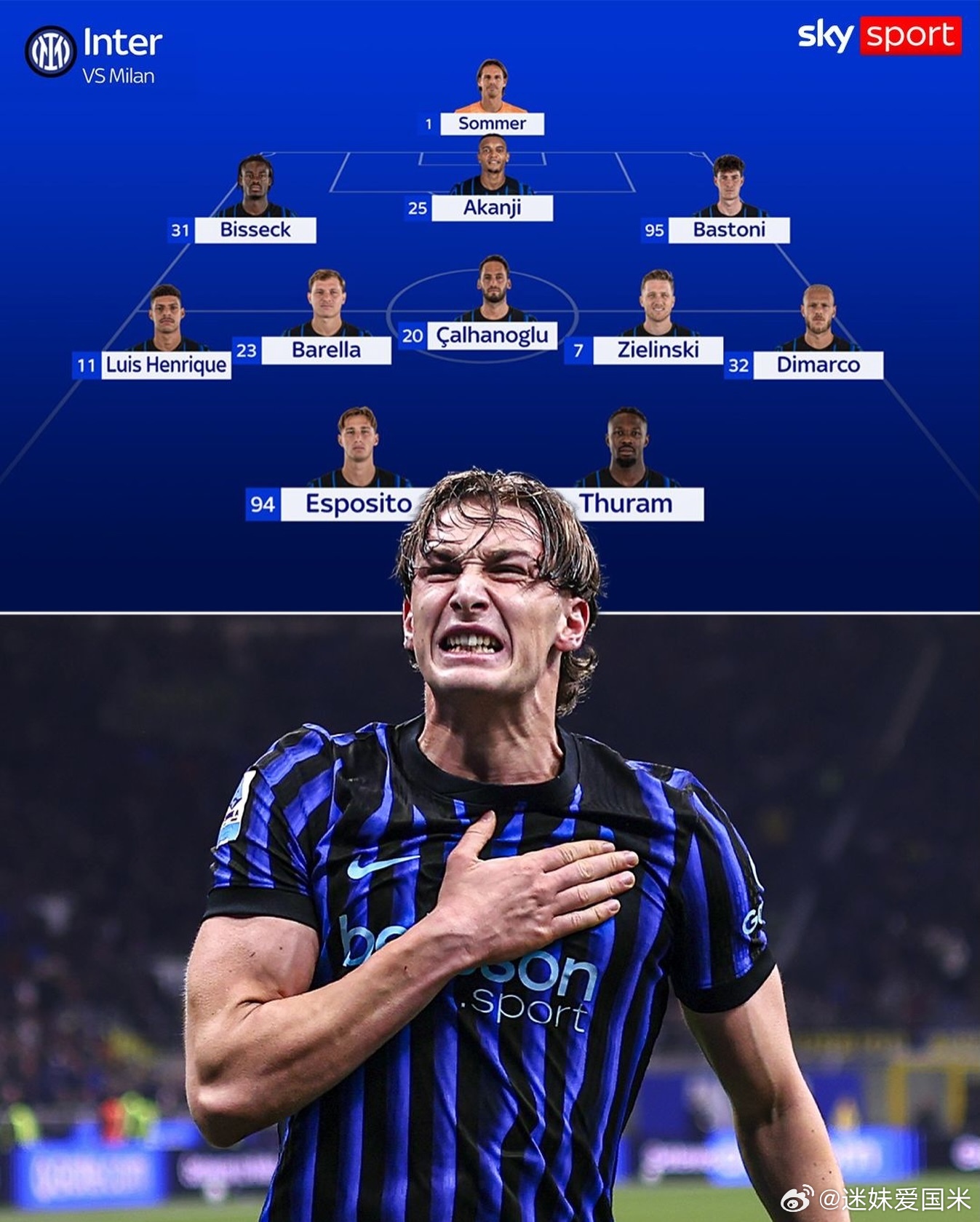 天空体育再次确认国际米兰的首发阵容国际米兰意甲热点现场