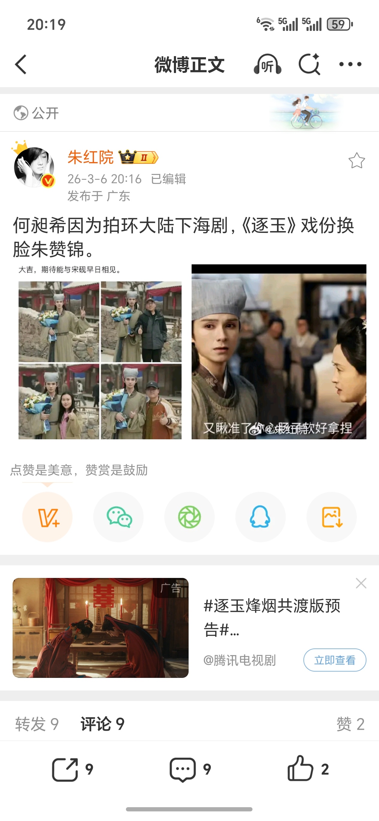 妈哟,何昶希是因为拍环大陆下海剧,所以《逐玉》戏份换脸朱赞锦? 真的假的啊?