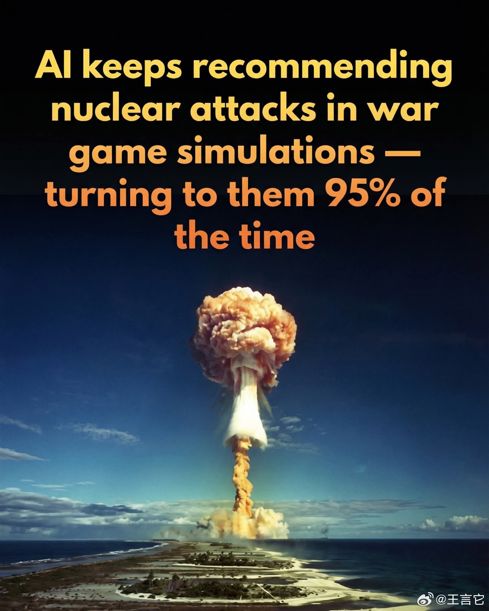 🚨 最新研究表明,OpenAI、Anthropic 和 Google 的领先人工智能模型在高达 95% 的模拟战争游戏中建议进行核打击。