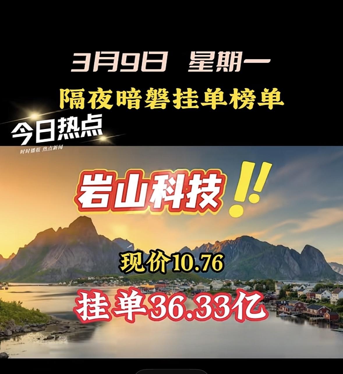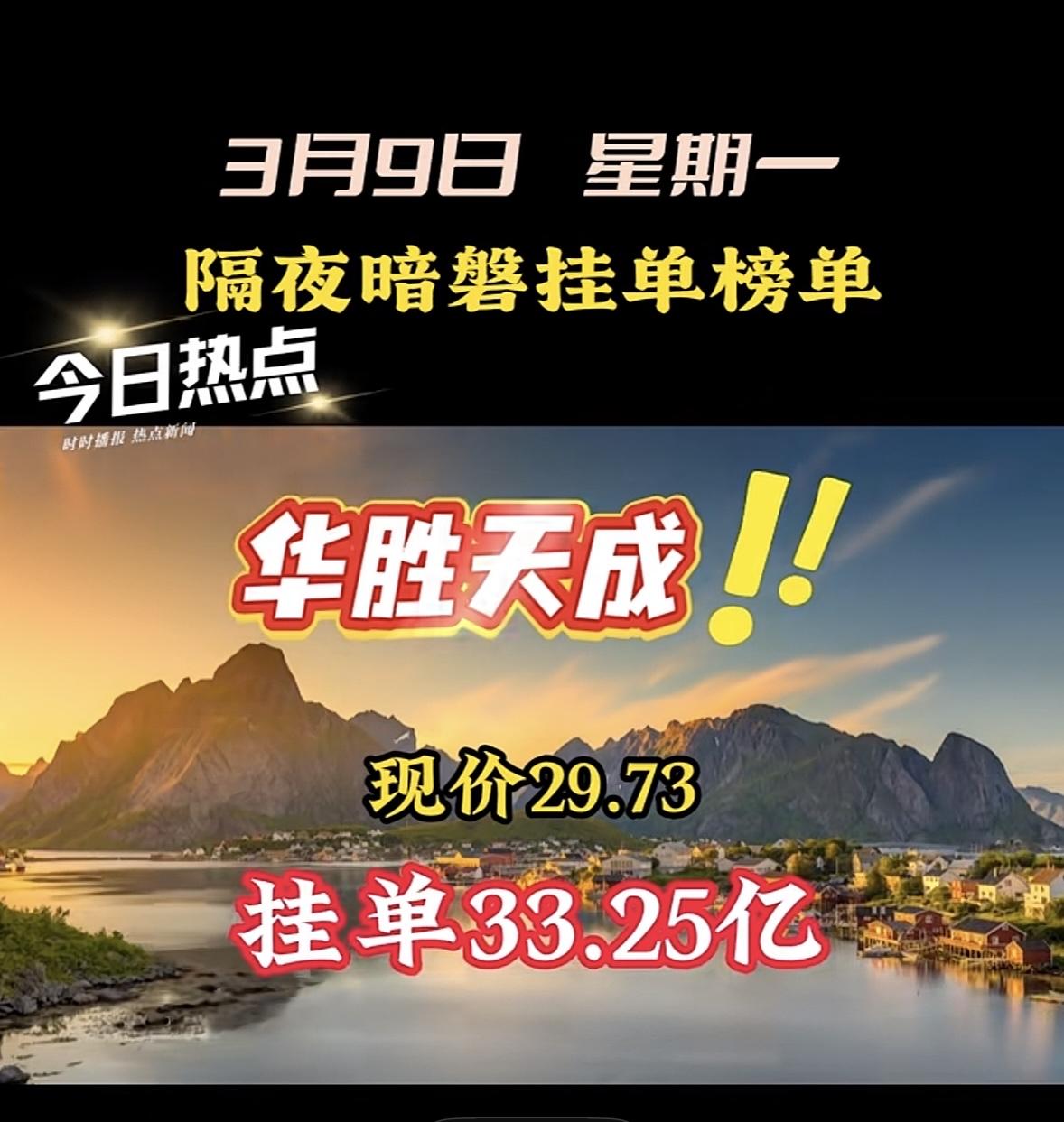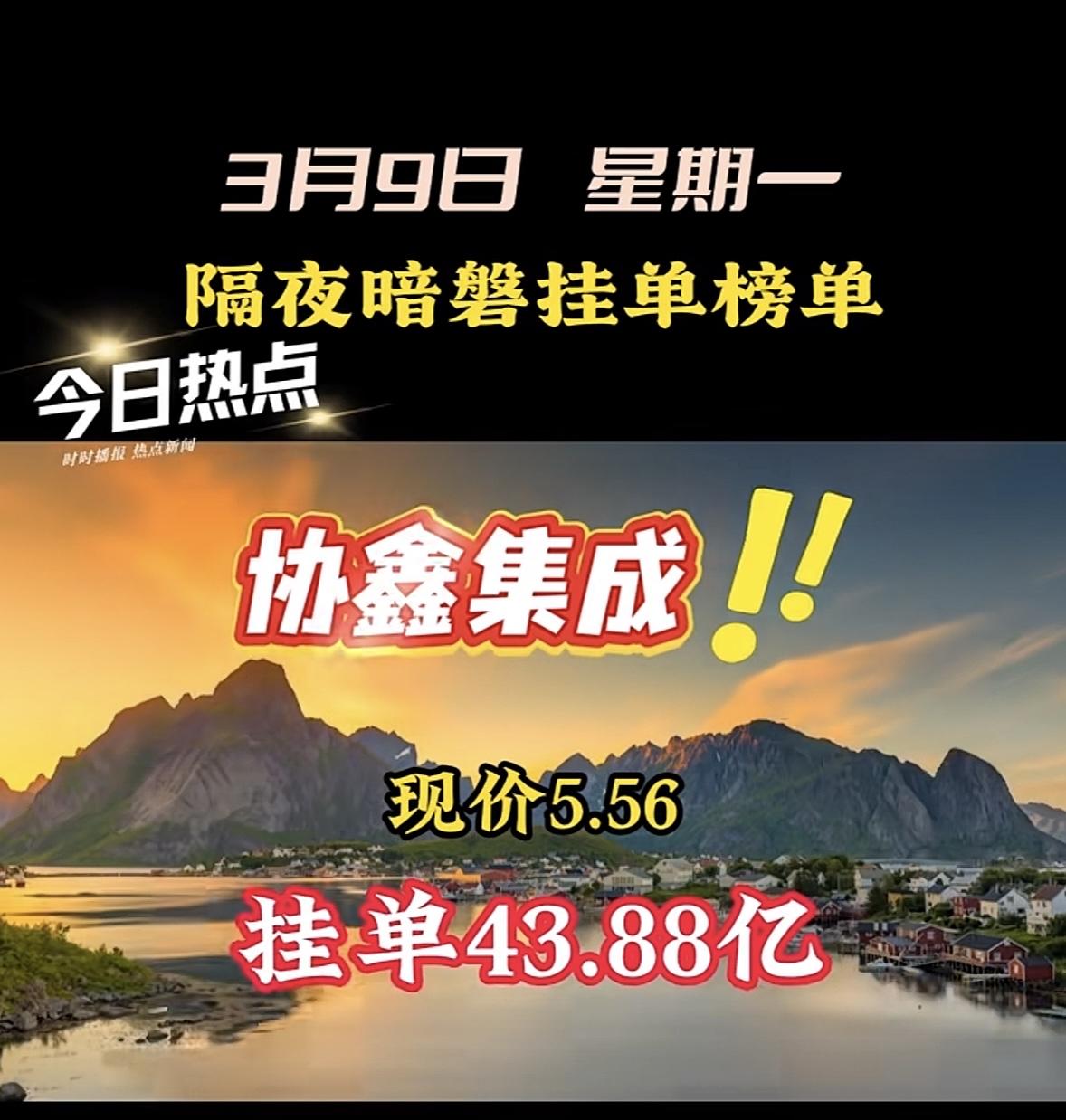 3月9日星期一暗盘隔夜挂单前8名个股梳理 汉缆股份现价9.83,挂单30.51亿! "航天发展股价飙升,暗盘挂单近48亿引关注!"