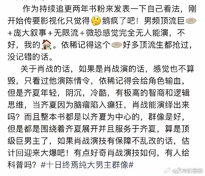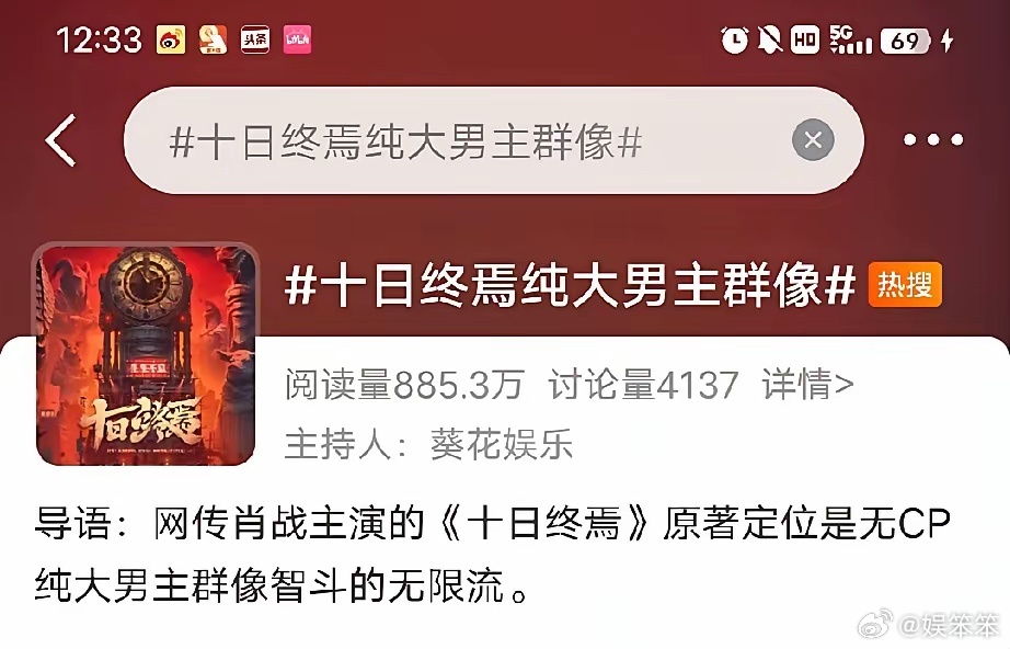 跟我读:十日终焉也是齐夏传。十日终焉纯大男主群像。现在是批皮们一拿配角搞事,🐧就要买热搜表忠心。大男主群像其实就是巨男主的意思,群像是围着巨男主转的。真粉丝的眼里都只有巨男主,批皮们别蹦跶了