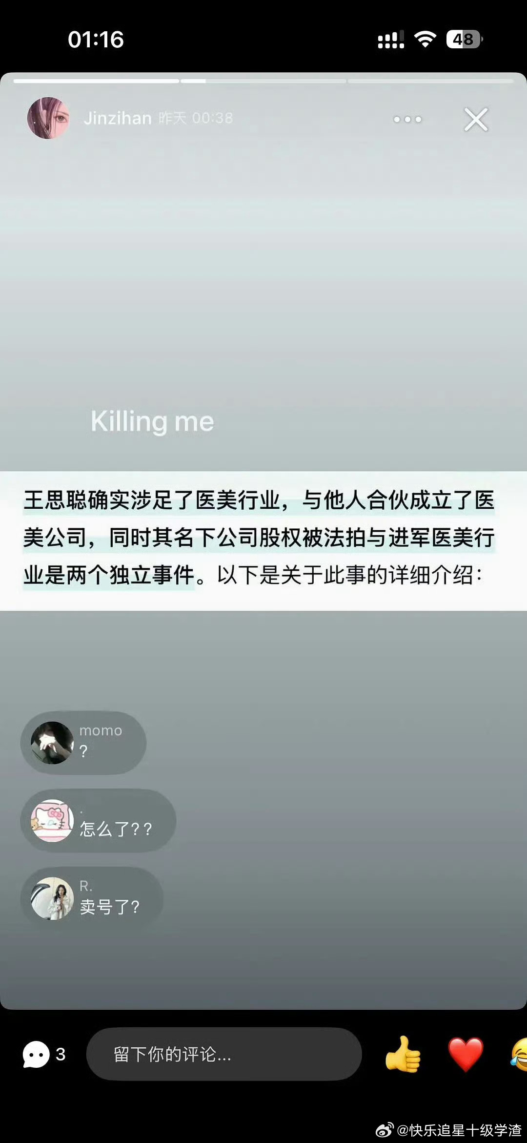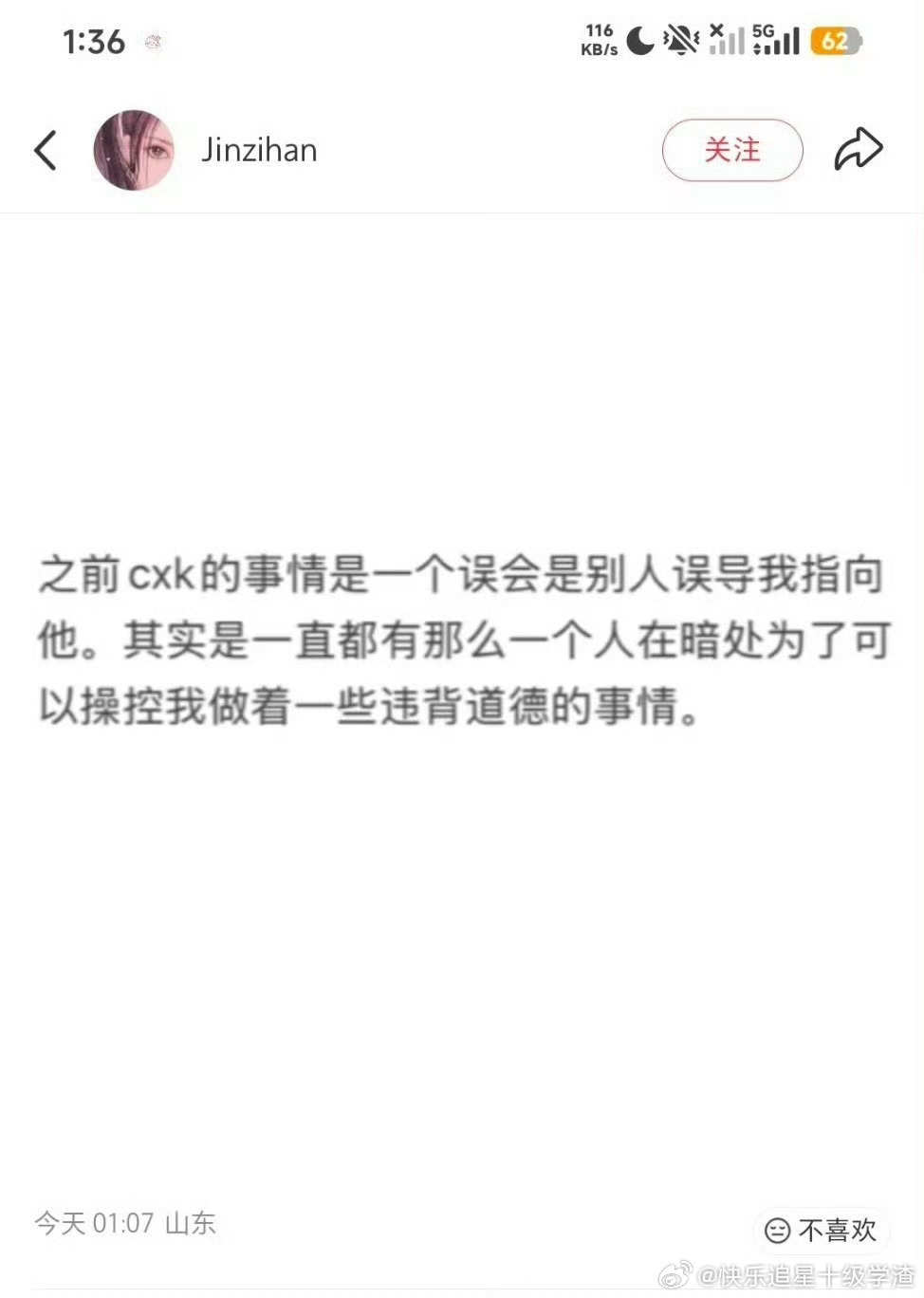 金子涵深夜发文
