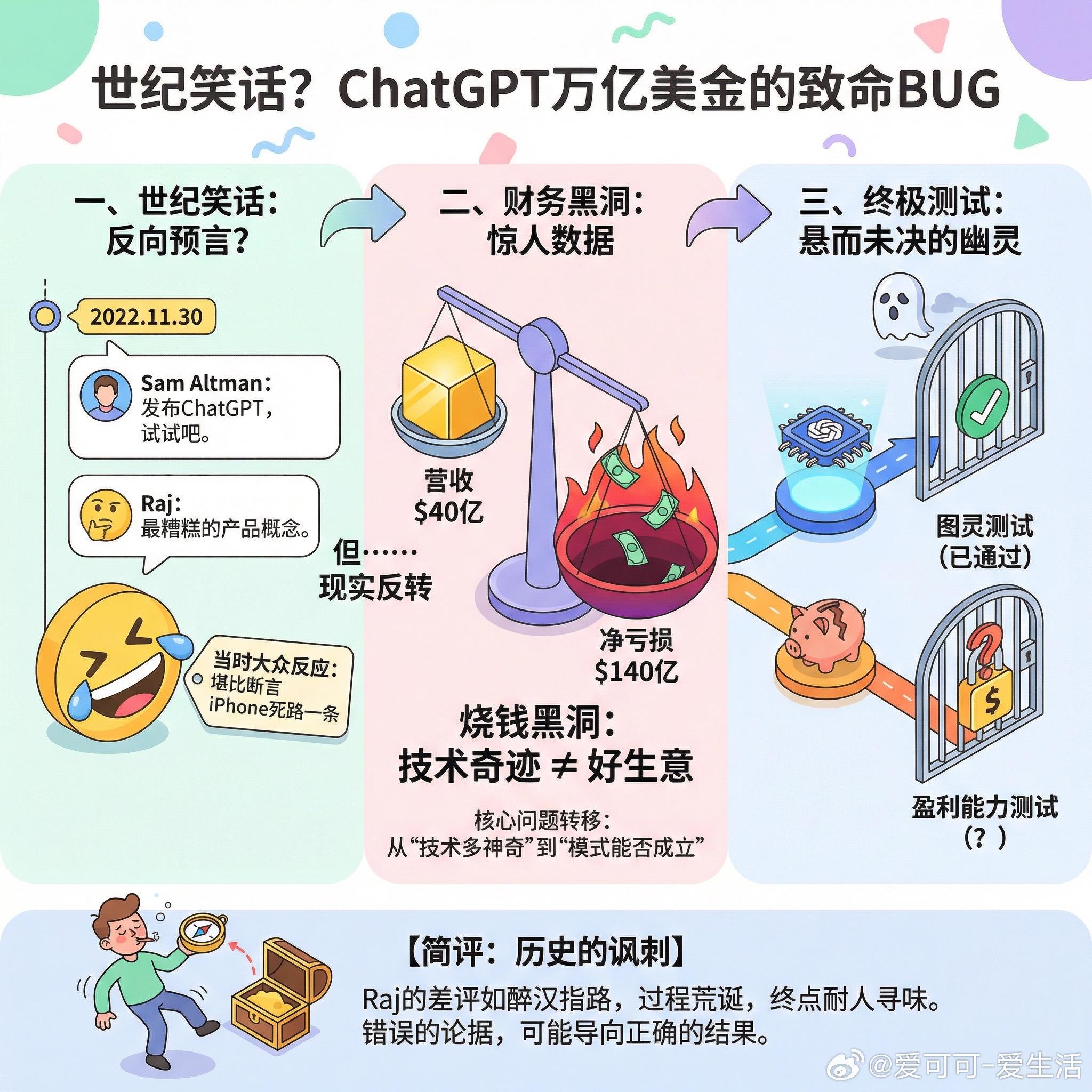 快速导读:2022年ChatGPT发布时,一条“史上最差产品概念”的评论如今已成全网笑柄。但深入挖掘后会发现,这句“昏话”可能无意中预言了AI行业至今未能解决的核心难题:一个技术上的奇迹,如何才能不是一个商业上的无底洞。