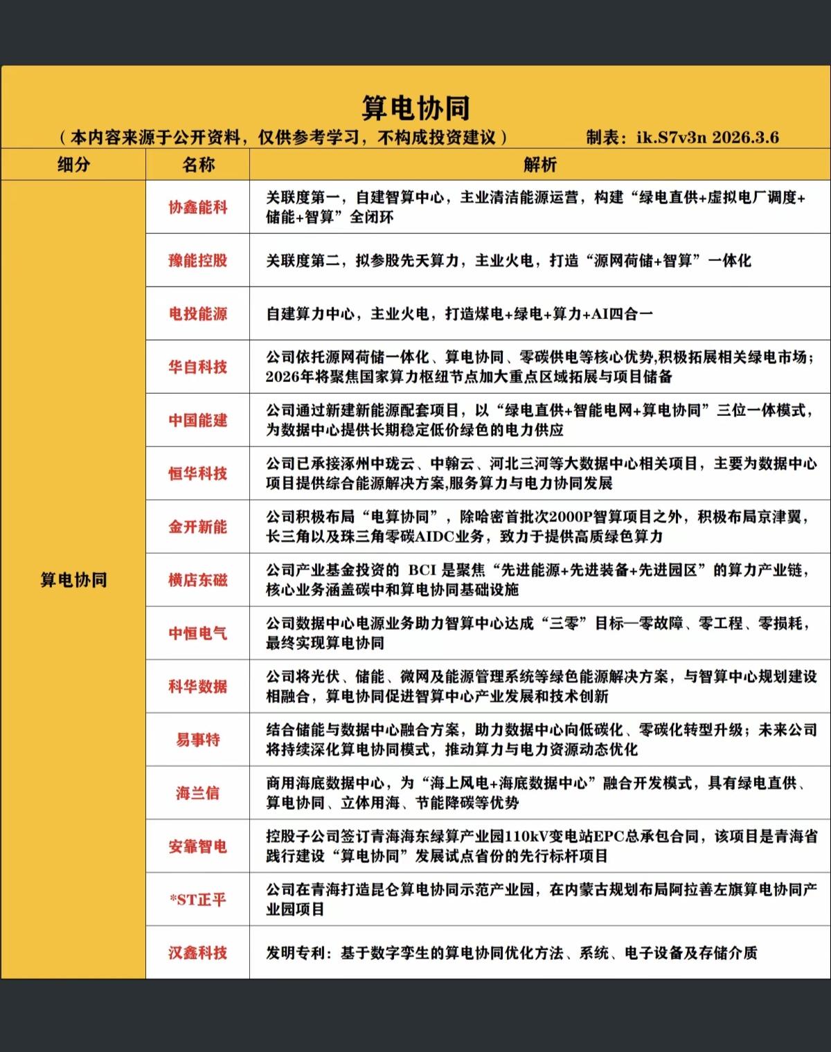 算电协同概念,八大细分赛道梳理! 1.电网算力调度 2.算力一体化 3.电力传输设备 4.算力供电设备 5.液冷/散热 6.储能 7.IDC/算力运营 8.综合算电一体化 相关核心龙头股: