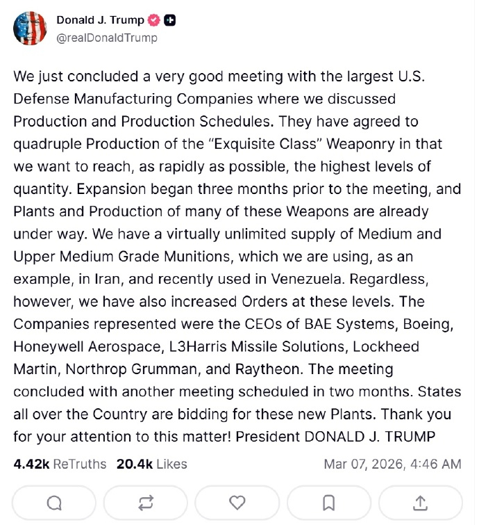 🔻特朗普声称要将美国高端弹药的生产能力“提升四倍”。🔻这玩意儿是你下一道命令就能提升的?你不是“弹药无限”吗?🔻材料从哪来?工人从哪来?工厂和生产线从哪来?国防预算又从哪来?你以为你还是那个1944年罗斯福在的美国?🔻赫格赛斯,弹药在哪里?伊朗导弹袭击以色列最大机场 伊朗大使说250年怎能挑衅3000年历史 海外新鲜事 中东现场直击