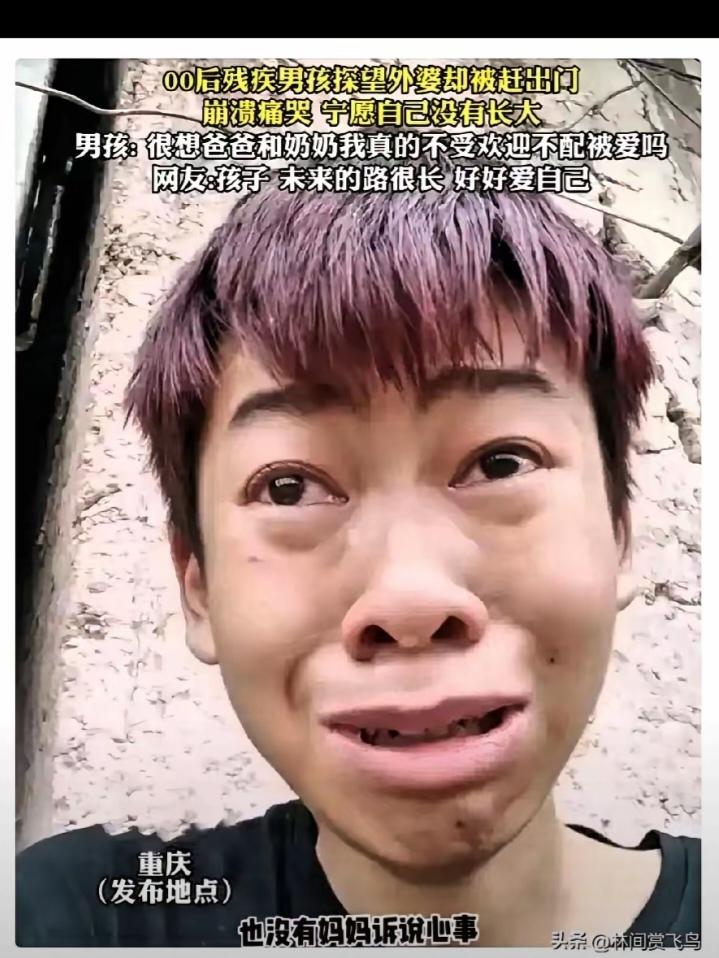 泪目!重庆一名男孩打工攒了半年钱,买了礼物来看望外婆。可外婆见到外甥,竟直接关上了门:"我不认识你,以后别再来了。"冰冷的话语刚落,就是一声重重的关门声,隔着屏幕都让人心里一紧,堵得喘不过气。 门外那个腿脚不便的男孩,瞬间僵在原地,手里攥了一路的礼物"哗啦"一声散落在地上,他就那么呆呆站着,连捡都忘了。 没人知道,这条从小被烧伤,落下残疾的右腿,陪着他在外面打了整整半年零工,风吹日晒,省吃俭用,一点点从牙缝里抠出钱,才换来这份想送给亲人的心意。 他以为,这里是外婆家,是有血缘牵绊的地方,总能换来一张温和的脸,能摸到一点点亲情的暖。可他不知道,自己早已是没人疼的孩子。相依为命的奶奶刚走,父亲得了尘肺病卧床不起,亲生母亲早早改嫁,断了联系,家早就不成家了。 他只是想来看看外婆,想在这世上多一个亲人,换来的却是满脸冷漠和绝情。就因为母亲改嫁,就因为他过得苦,连血脉相连的外孙,都成了上门讨生活的"外人"?他慢慢蹲下身,低着头默默抹眼泪,瘦小的背影看得人心头发酸。 都说麻绳专挑细处断,厄运专找苦命人。本就无依无靠的孩子,连最后一点亲情的指望都被掐灭,往后的路,他该带着多少心寒往前走啊。 真心掏出去换不来半点真心,这孩子受的苦根本不是穷能比的。身体带着残疾,家里顶梁柱都垮了,他拼尽全力想抓住一点亲情,却被最亲的人当成累赘往外推。人这辈子最扎心的不是日子过得难,是身边连个疼自己的亲人都没有。他攒的不是礼物,是对亲情最后的期盼,这扇关上的门,也把他心里最后一点温暖彻底堵死了。 各位读者你们怎么看?欢迎在评论区讨论。
