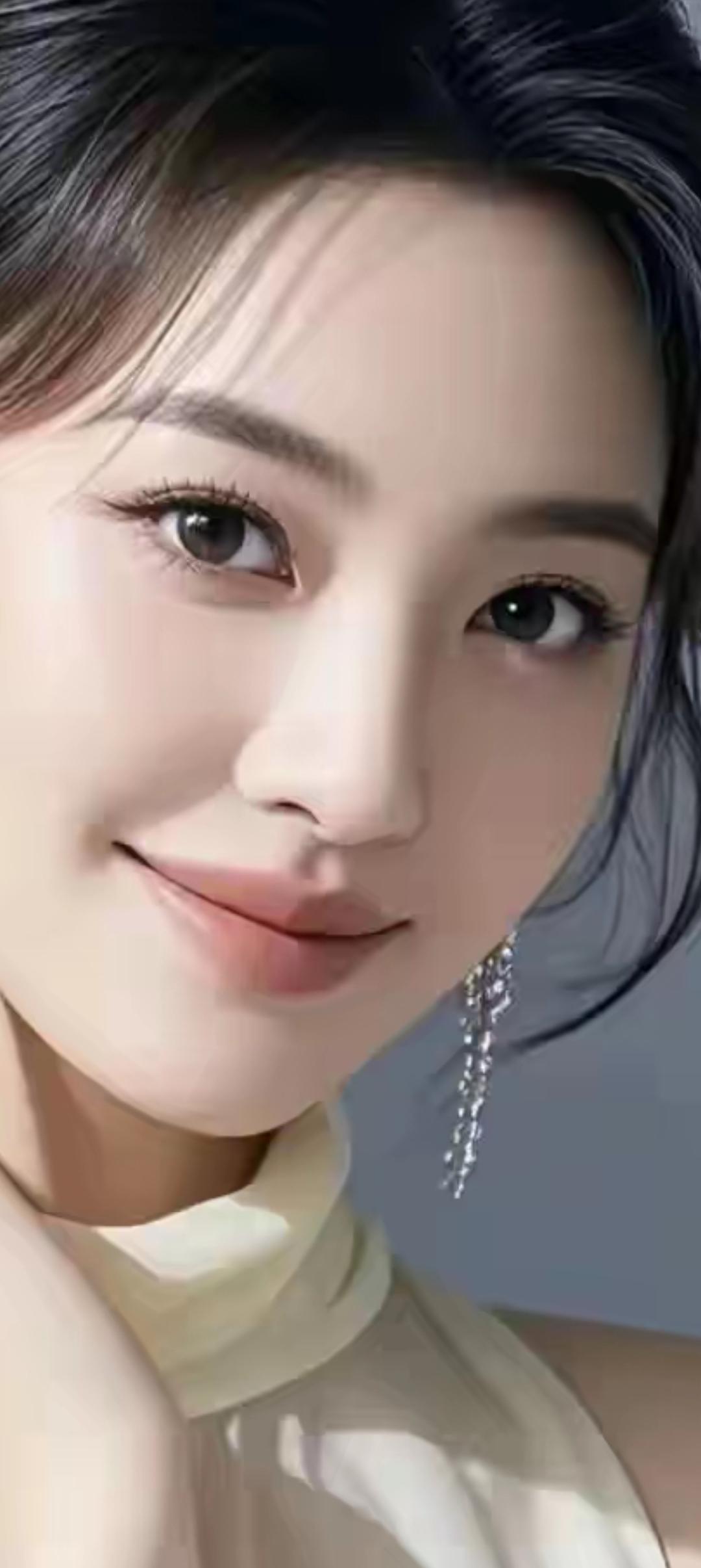 优雅微笑,闪耀耳环,温柔动人。