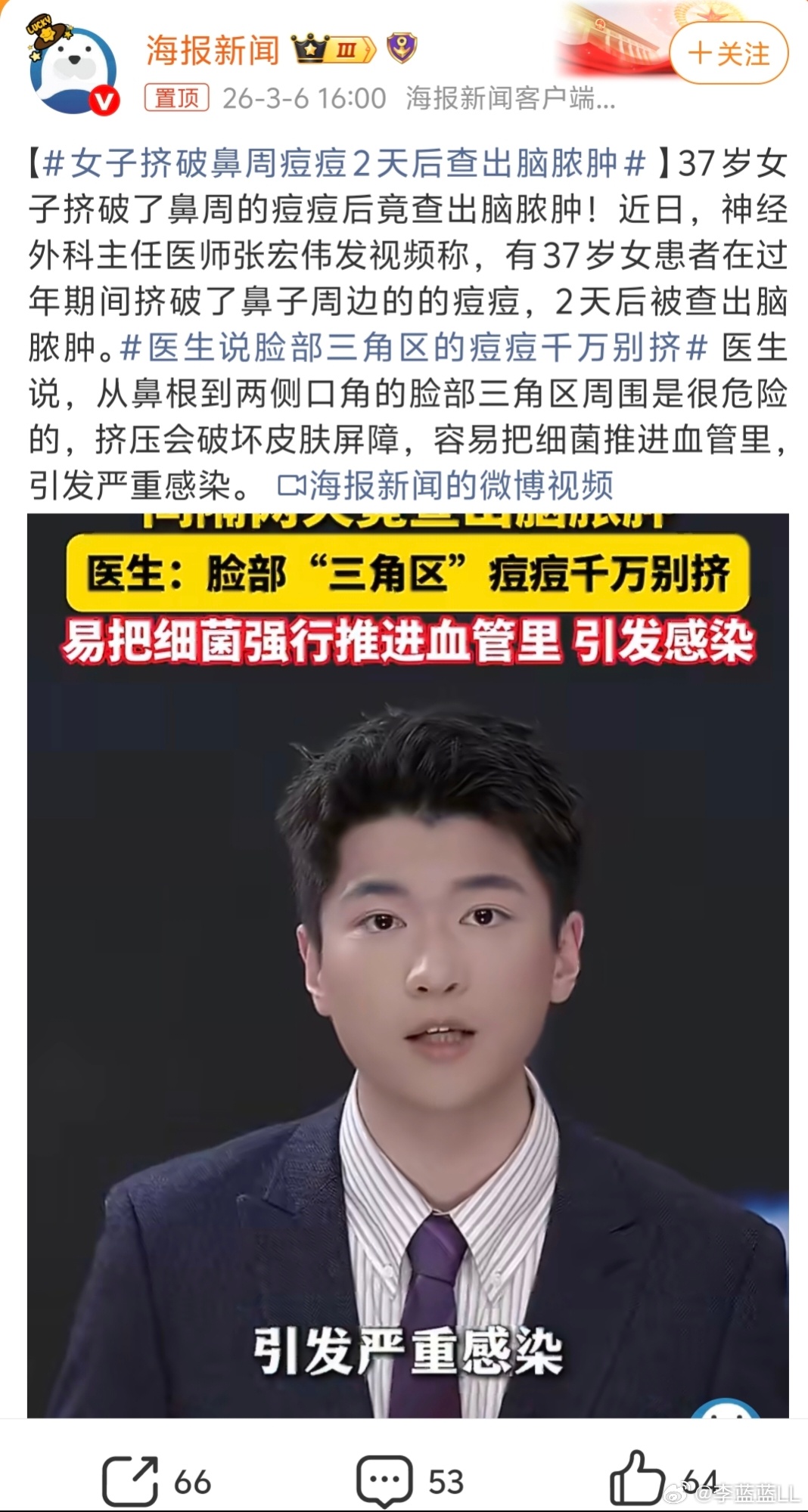 女子挤破鼻周痘痘2天后查出脑脓肿我滴天!手贱挤个痘居然能这么危险的?!还好我之前手贱乱挤没事,以后长痘得忍忍了!!