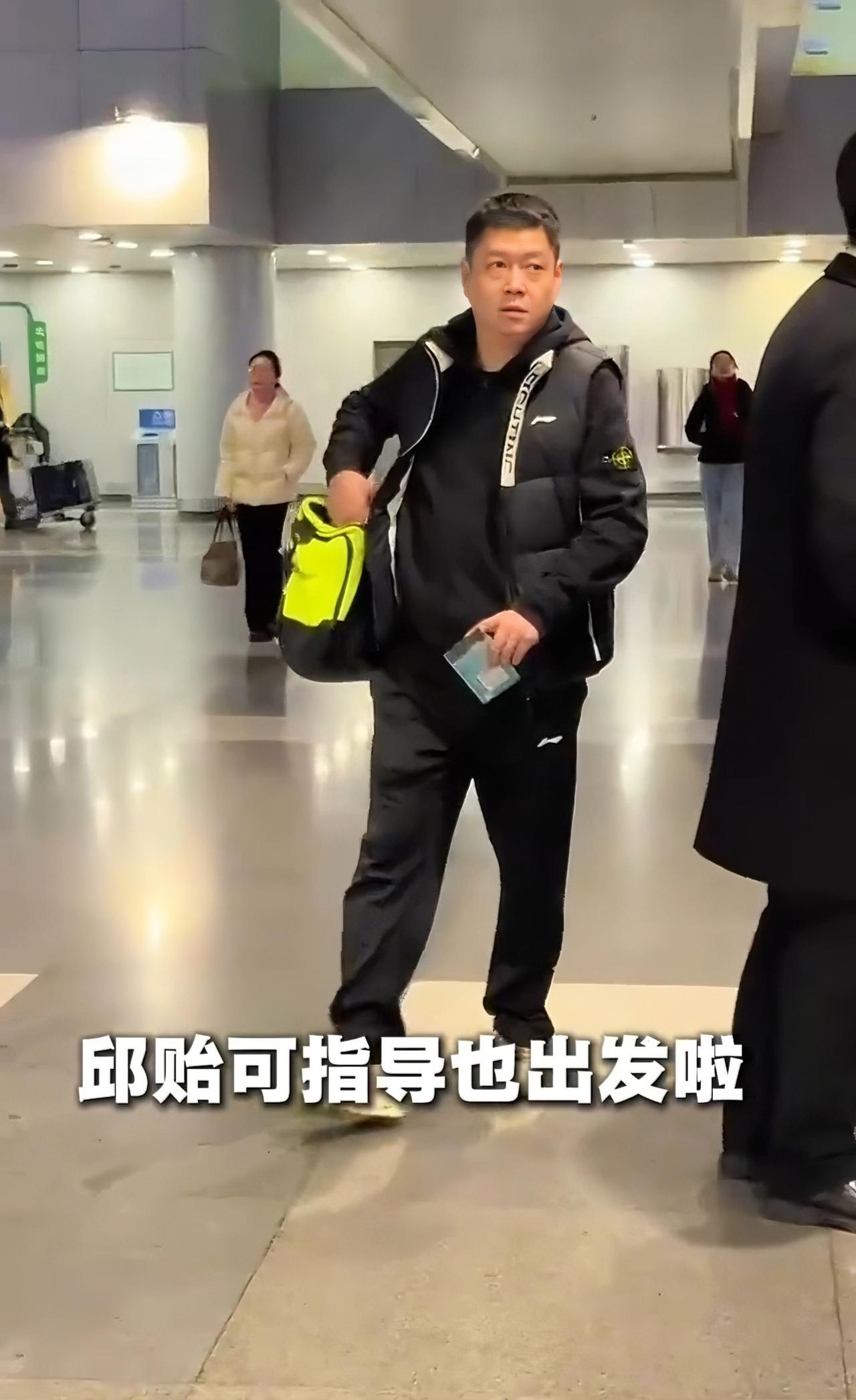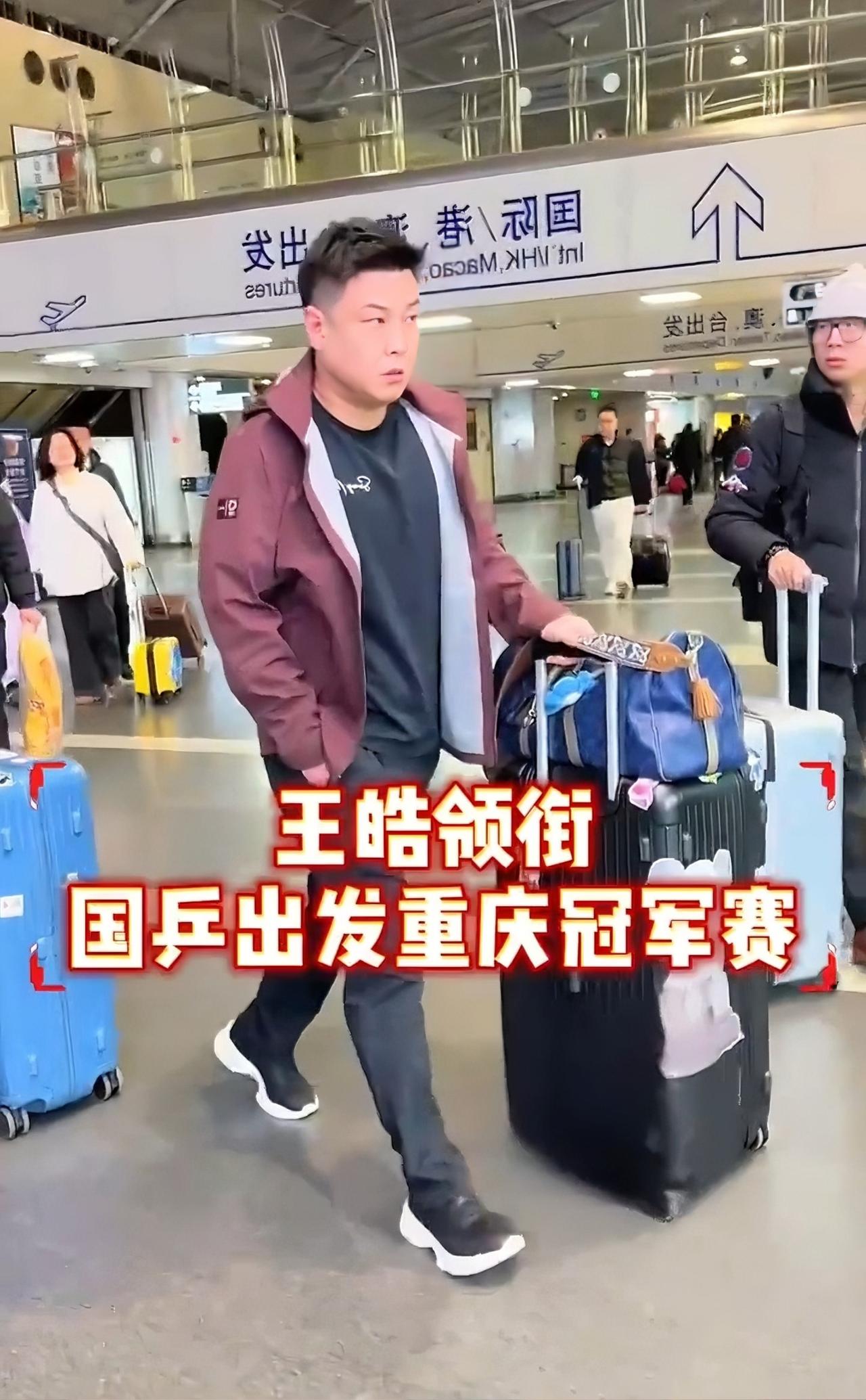 王楚钦与孙颖莎不约而同的都是一身黑! 孙颖莎黑色羽绒服加黑色运动裤, 简洁、干练。 王楚钦穿着黑色的背心, 内搭蓝色卫衣, 黑色阔腿休闲裤, 脚上是一双带毛的厚底棉鞋, 运动员的脚长期的比赛和训练, 需要更好的保护。 他的身后跟着的是“卷毛”王晨策, 在国内比赛就是好, 比国外比赛更加的方便。 两个人先后乘着不同的黑色轿车到达机场, 走的VIP通道。 北京时间3月7日, 国乒赶早出发重庆冠军赛, 抽签仪式在明天下午3点钟, 为什么国乒这么早就去重庆呢? 因为他们要参加国球进校园的活动。 球迷们有福了, 又能看到国乒队员们与小朋友们的互动, 赛场上是矫健的运动员, 赛场下国乒队员们就是一个个的青春靓丽的大男孩和小姑娘, 他们一个个意志品质坚强, 品德高尚。 重庆的小朋友们有福了, 能够近距离的与国乒队员们互动! 国乒大部队出现在机场。 经过几天的休整, 男队主教练王皓精神抖擞, 穿着枣红色的运动服走在前面, 邱贻可还是背着黑中带一抹绿的运动背包出现, 向鹏一件黑色羽绒服, 温瑞博用手捂着打哈欠, 起得太早, 孩子还没有睡好觉呢! 重庆冠军赛国乒来了, 加油!