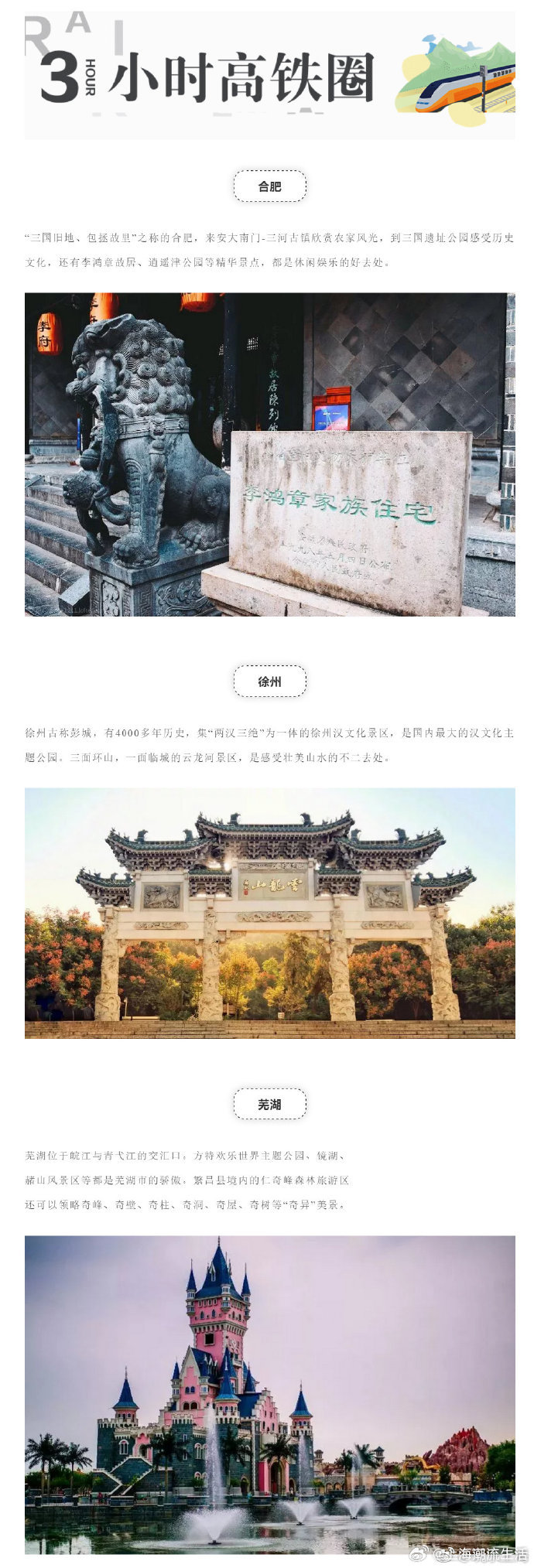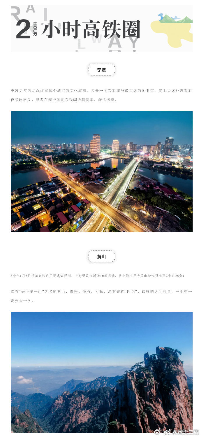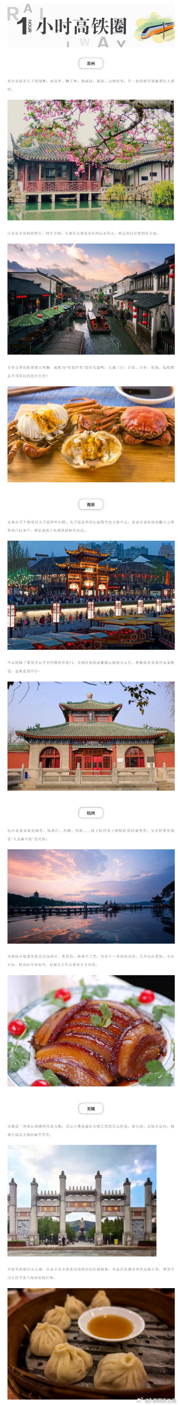 【从上海出发居然可以去那么多城市,沿途都是美景!】从上海坐高铁动车出发,1小时内可抵达苏州、南京、杭州……2小时即可抵达镇江、金华、宁波……3小时可到合肥、徐州、芜湖……挑一个周末,不过几个小时的时间~就可以和朋友一道去各个地点白相!