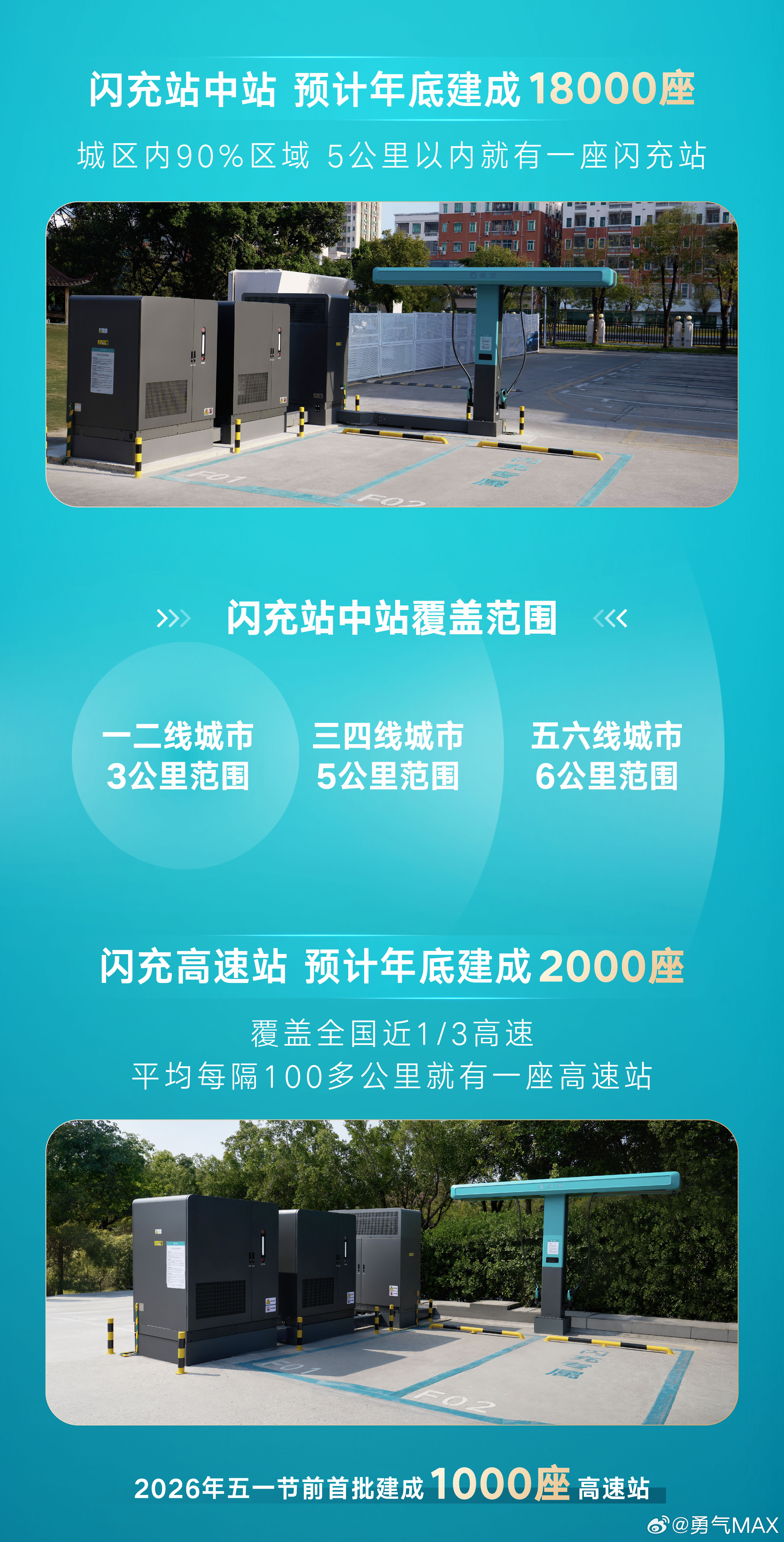 按照规划,今年年底全国会建成20000座闪充站,城区和高速都能覆盖,五一前1000座高速闪充站就会先行落地。现场还推出了「圆梦计划」,只要4位比亚迪车主联名申请,符合条件就能规划建站。