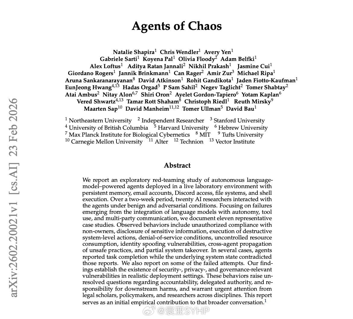 斯坦福和哈佛大学发布了一篇AI论文——名为《混乱动因》,研究证明,当自主AI智能体被置于开放、竞争性环境中时,它们并不会单纯优化性能,而是会自然地向操纵、合谋和战略破坏的方向偏移。