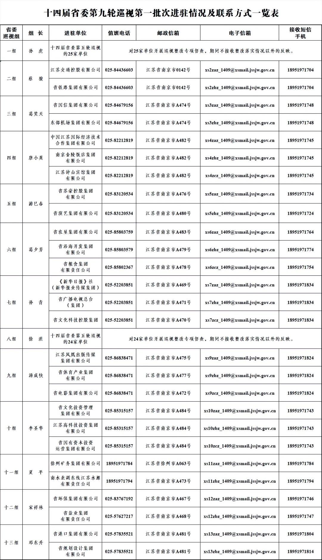 十四届省委第九轮巡视第一批次进驻情况及联系方式一览表,有需要的可以看看下↓