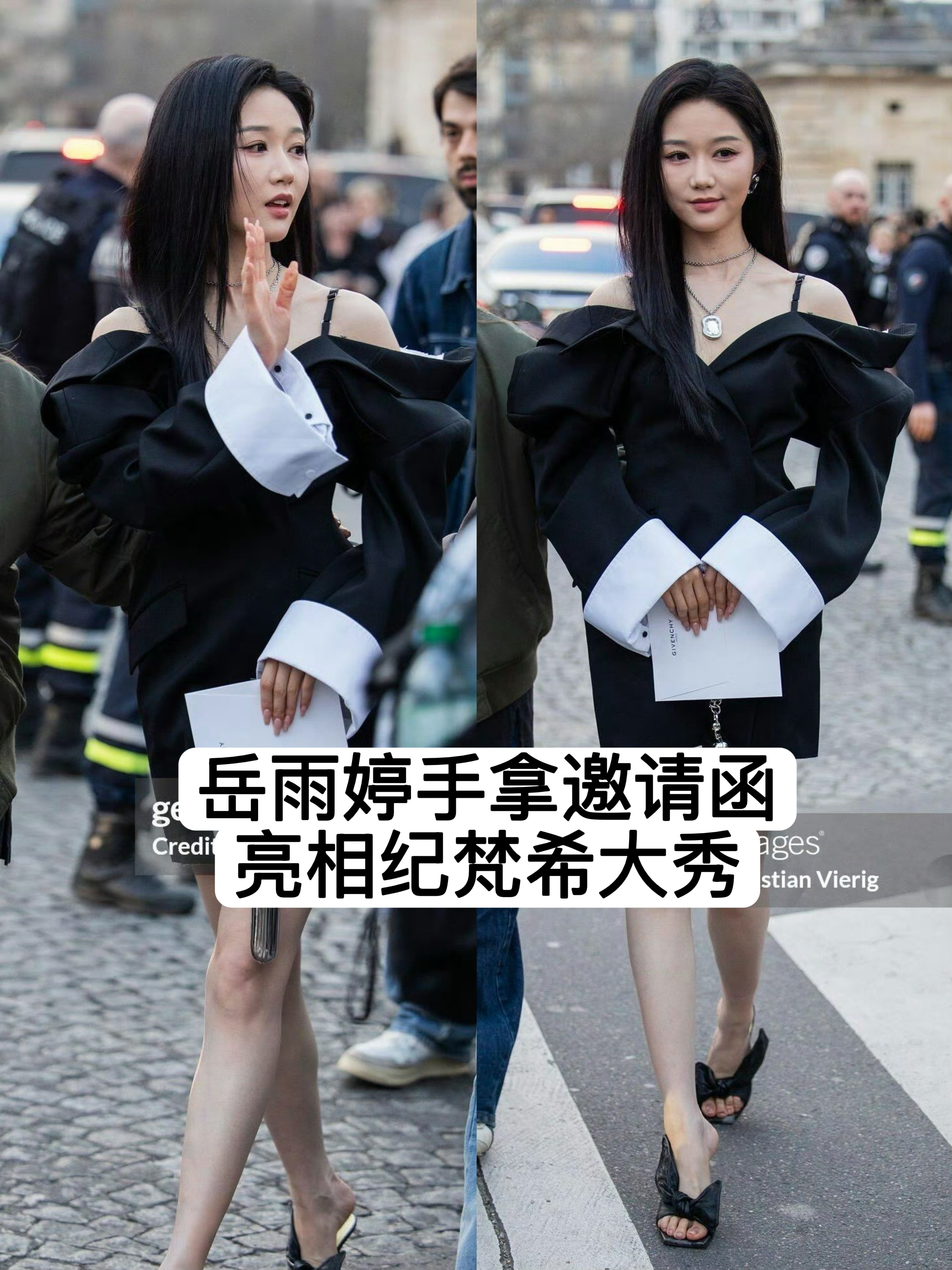 岳雨婷手拿邀请函亮相纪梵希大秀