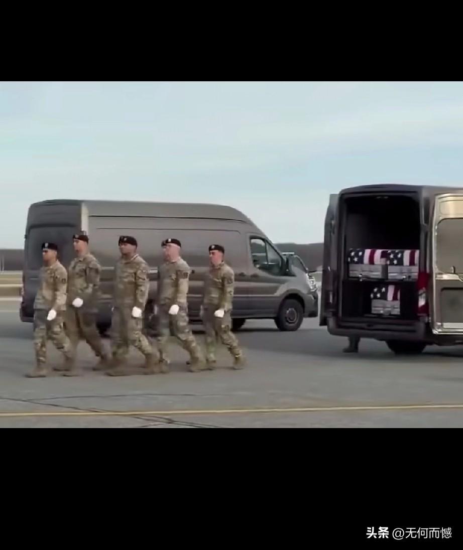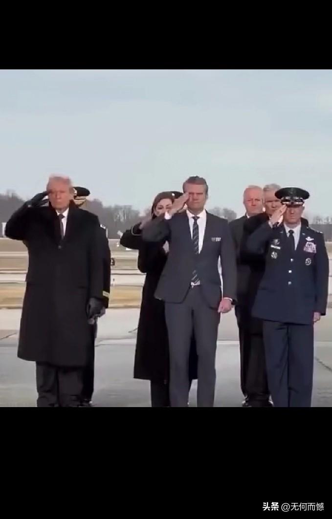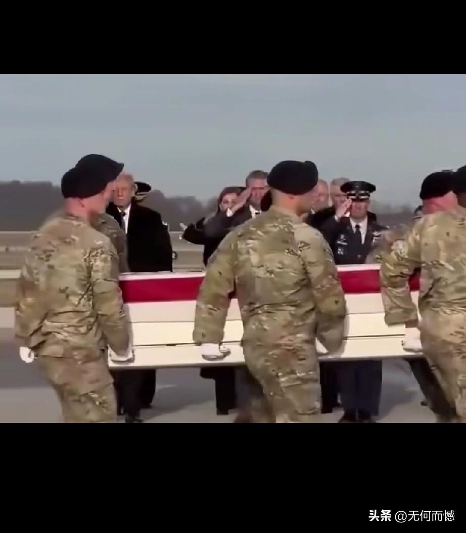 老特亲自到机场迎接阵亡的美国士兵遗体回国,老特的表情非常的严肃,非常的凝重,他领着一行人向阵亡士兵的遗体致敬,现在这应该是第一批运送回国的,相信在未来的一段时间,陆续还会有,不知道老特看到这些士兵的遗体后,心里会不会有愧疚之感?