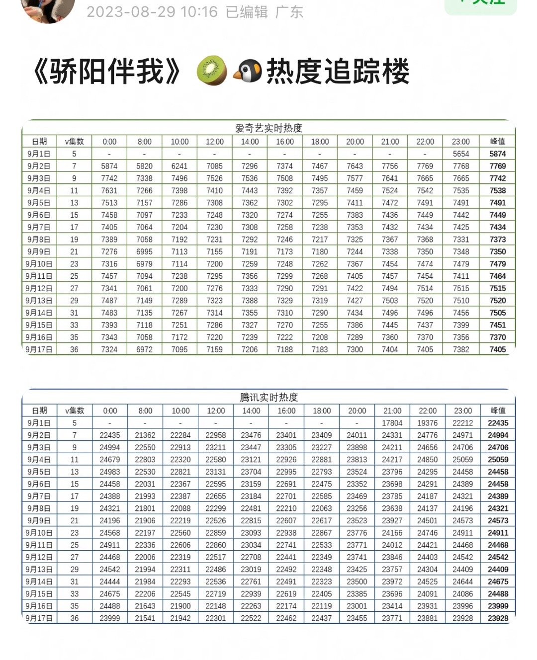 🐧🥝双平台联播剧不要忘了还有骄阳伴我啊!新丽大制作,女主是影后。🥝首日热度5874,🐧首日热度22435。
