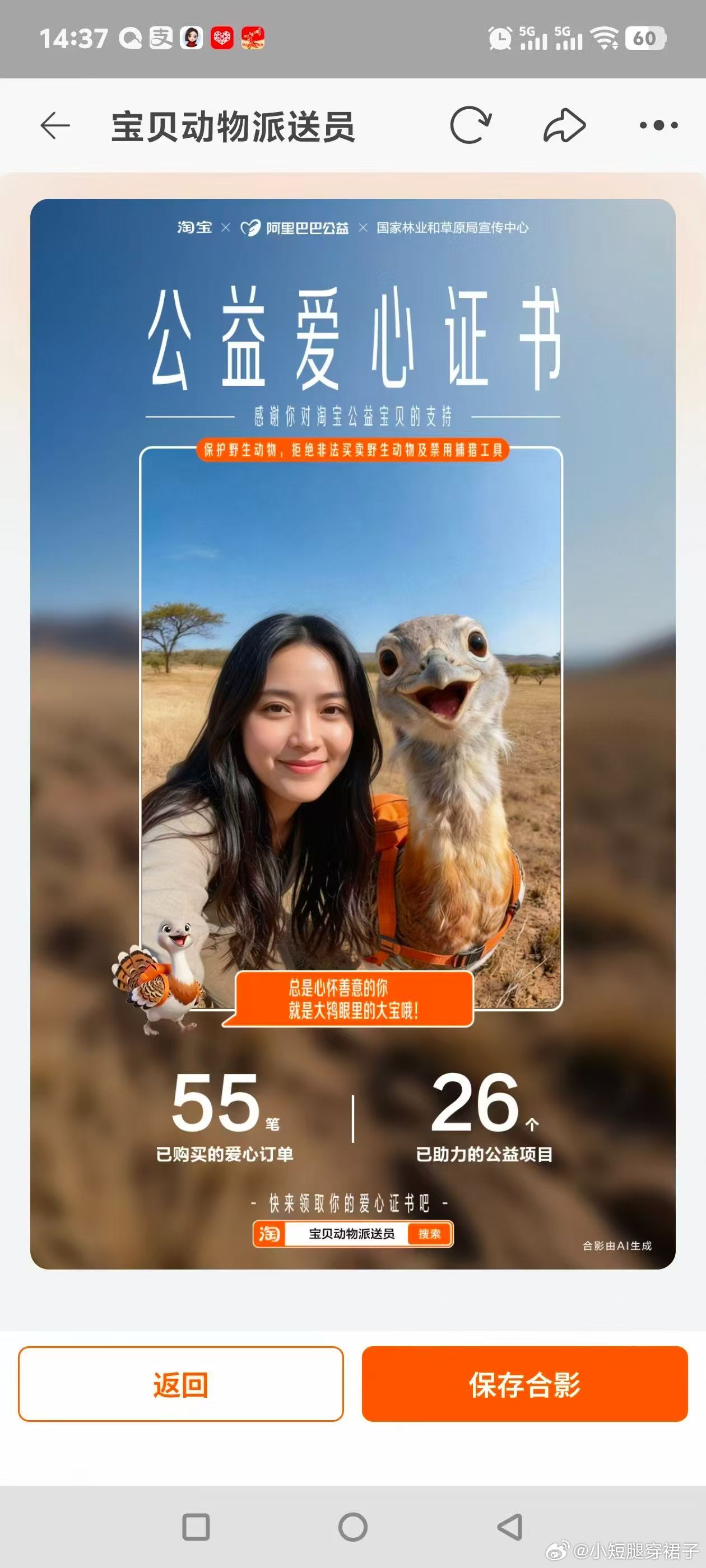 我的是天津大鸨唉,他来给我送货。淘宝上新了34个动物派送员淘宝特邀宝贝动物来送货