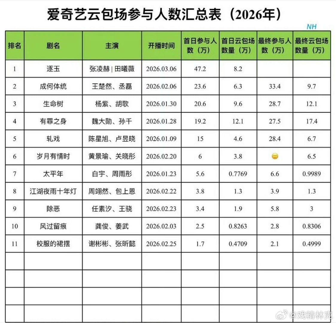 爱奇艺云包场参与人数汇总