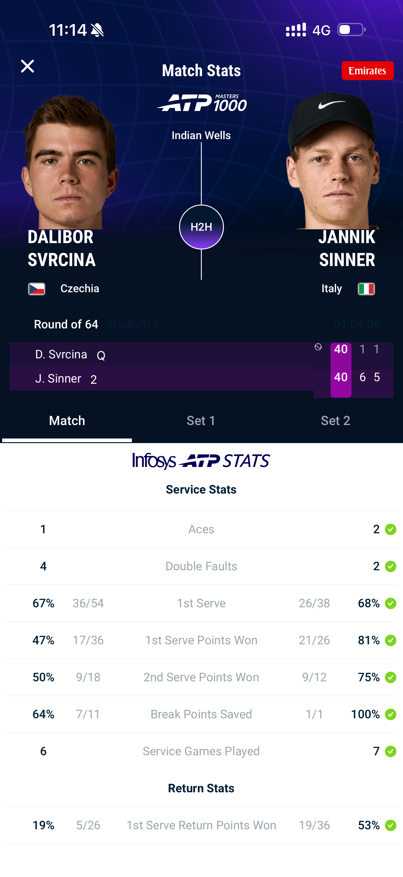 IW大师赛,2号种子辛纳在赛末有点波动,几度挣扎,但是不影响大局,6比1、6比1横扫斯夫奇纳,晋级32强,但是……破发点漏的有点厉害了,还是恭喜辛纳!网球talking大会