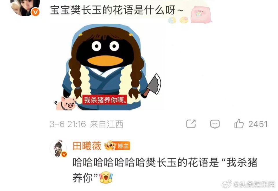 樊长玉的花语是我杀猪养你,这个田曦薇也太有梗了吧!田曦薇说樊长玉的花语是我杀猪养你田曦薇回应樊长玉的花语