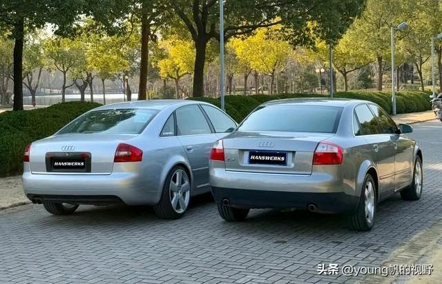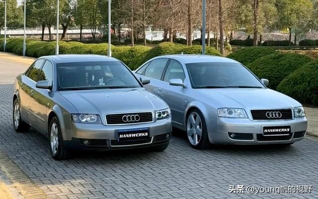 再来看看20多年前的奥迪A6和A4轿车。这两款轿车也毫无悬念是经典的豪华轿车了。在2000年代初期,一汽大众奥迪A6正式面世,着实也让众多人惊艳。原来轿车可以设计得那么漂亮。这款车既有着足够长的尺寸,又有着一气呵成的流线型圆滑的外观,整车透露出一种豪华尊贵的气息。当年的售价60万左右,成为众多政府和高端商务场合的标准车型。与此同时也推出了面向偏居家和商务的奥迪A4,尺寸虽然小于A6,但豪华程度也依然不减。让人们充分享受驾驶与豪华的乐趣。