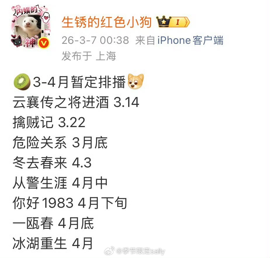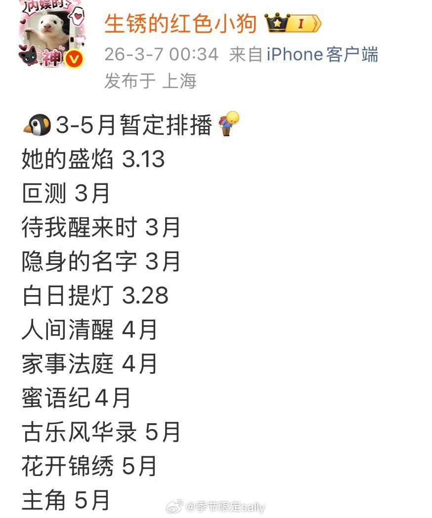 四大平台芒果优酷爱奇艺腾讯Q2预排播