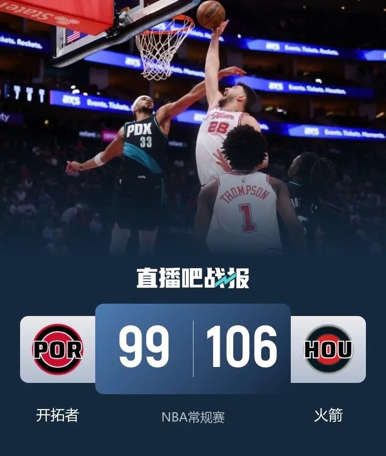 杨瀚森缺阵,开拓者毫无主心骨,憾负火箭NBA常规赛,火箭主场对阵开拓者。首节火箭状态差,一直被动追分,开拓者一波16-5拉开两位数差距。之后火箭回暖,跨节打出24-12抹平比分,还反超领先上半场1分。下半场双方拉锯,前期多次互换领先,后半段开拓者稍优领跑。末节火箭找回状态,一波23-5扭转局势,建立两位数领先。开拓者止血追至5分,但已无力回天。最终,火箭主场击败开拓者。nba火箭战胜开拓者杨瀚森