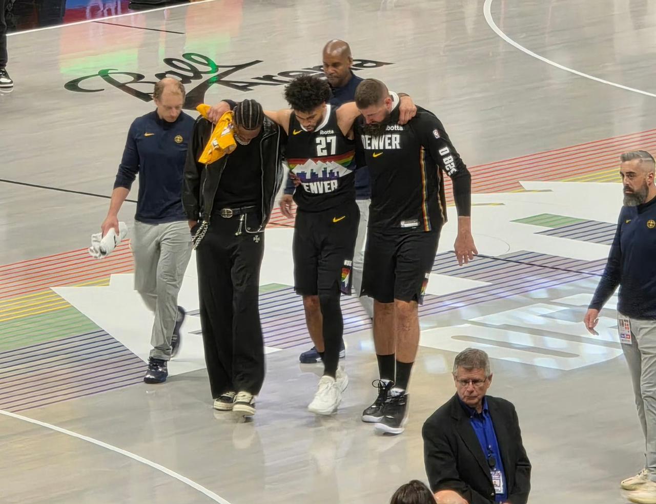难顶!戈登刚复出,穆雷又伤了 掘金战东部强敌尼克斯,戈登复出,掘金迎来久违的首发五虎合体;奈何伤病属性拉满,穆雷打了18分钟贡献12分3助攻,奈何沉退时不慎踩到约基奇再次伤退。主力轮流受伤,掘金今年的夺冠前景堪忧。没有穆雷,球队三当家戈登复出仅得3分3篮板3助攻显然状态不佳,加上全队40投8中的三分命中率铁到无解,纵使约基奇轰下38分8篮板5助攻也无力回天。 尼克斯则是全民皆兵142-103大胜掘金;全队射出16记三分,阿诺奴比34分7篮板5助攻4抢断无处不在,唐斯17分13篮板,哈特18分5篮板,布伦森9分13助攻;替补席上沙梅特10分,罗宾逊13分。