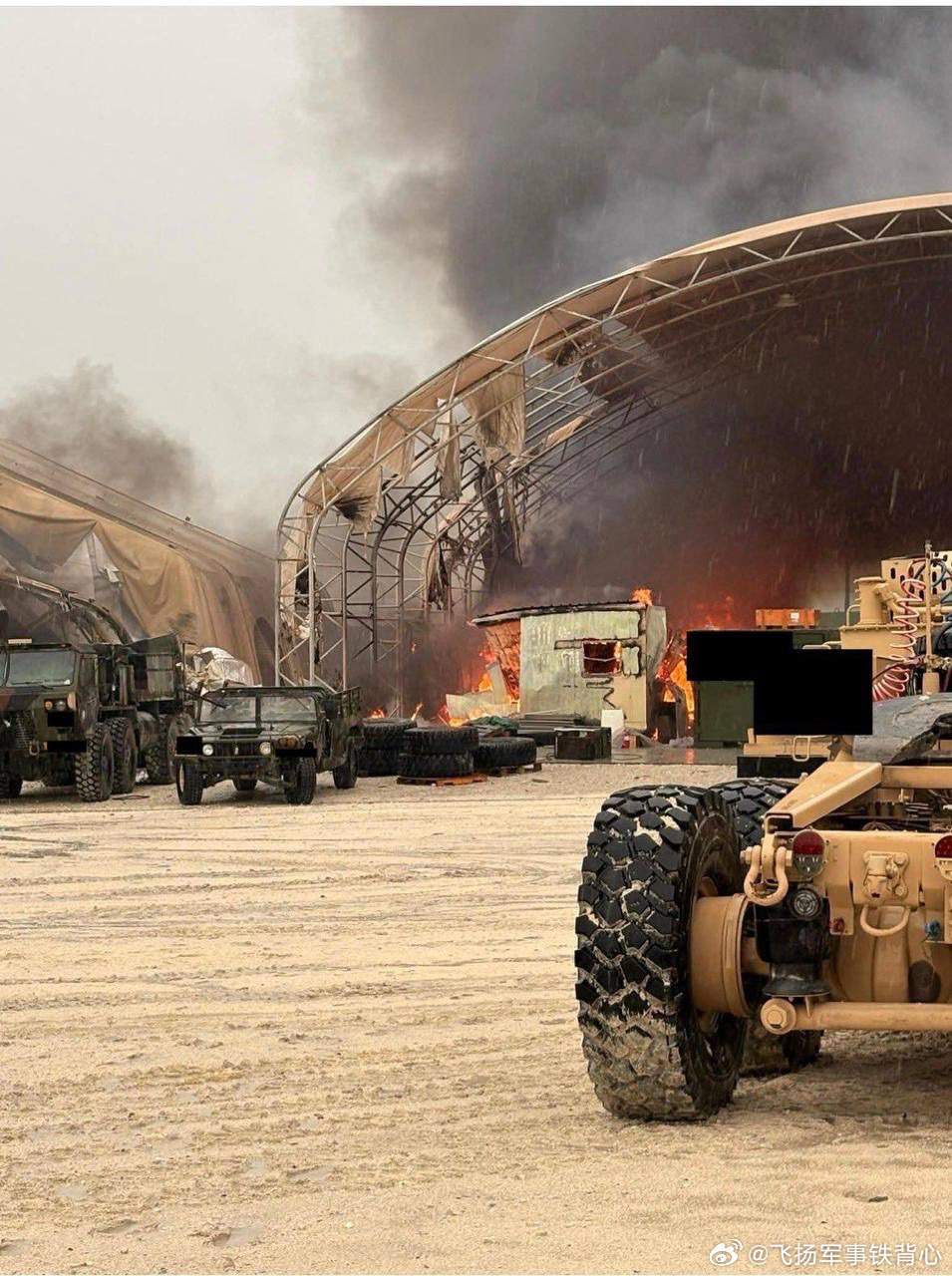 被伊朗导弹问候之后的阿联酋境内的美军基地【图一二】及富查伊拉石油工业区【图三四】。烽火问鼎计划美伊以冲突