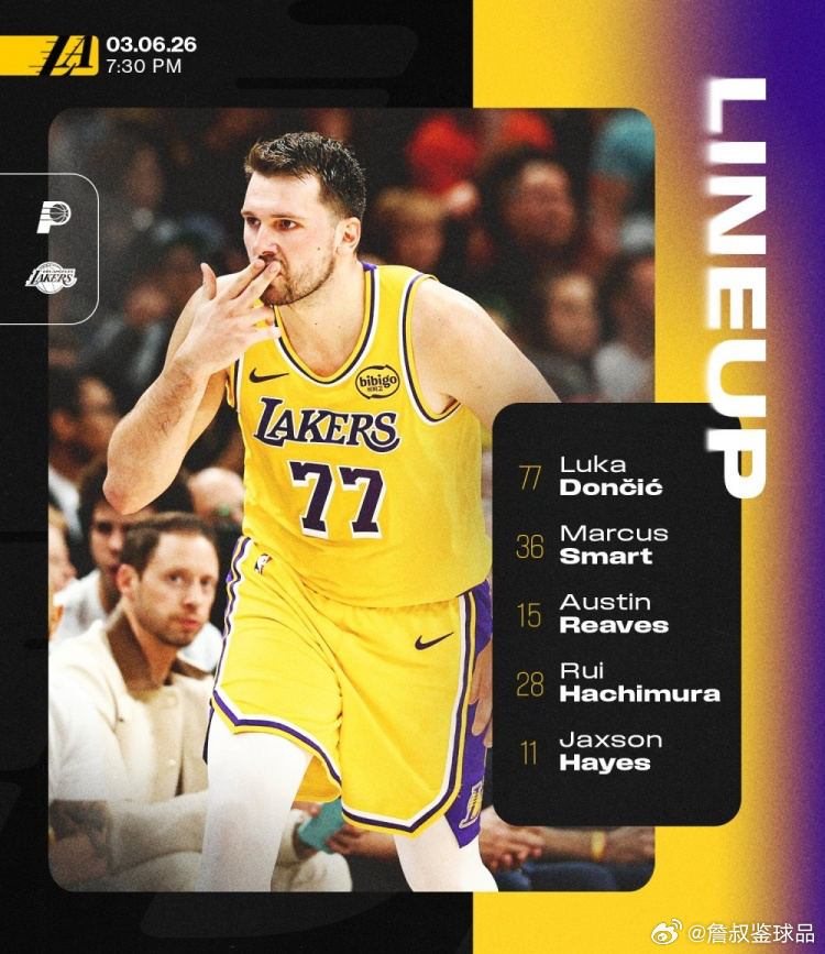 湖人主场迎战步行者,赛前首发阵容公布:东契奇、斯玛特、里夫斯、八村塁、海斯。本场