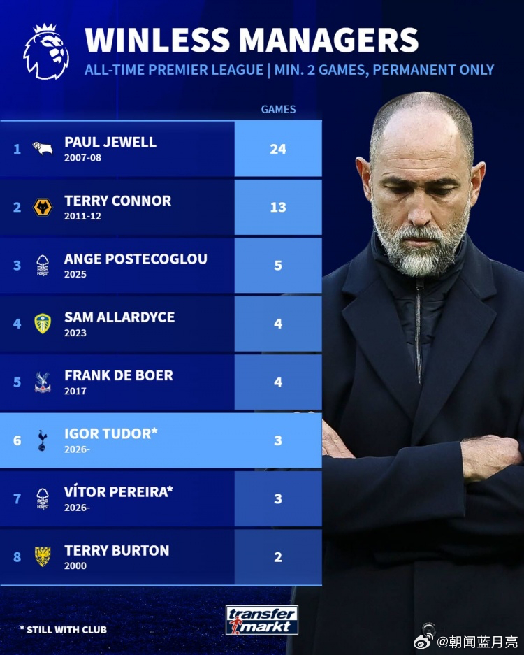 德国转会市场统计,热刺主帅图多尔、森林主帅佩雷拉上任后均未取胜。