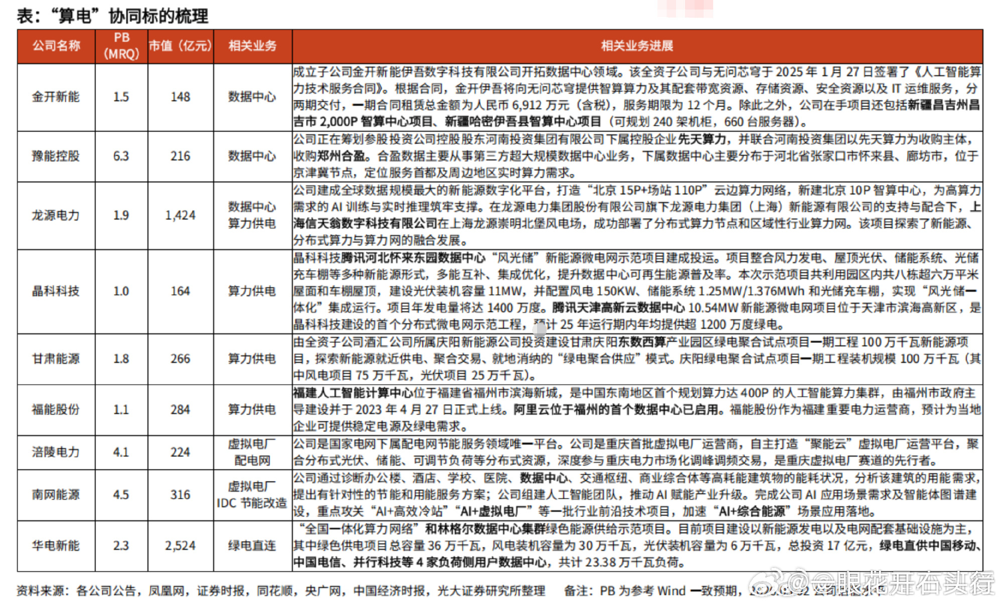 “算电协同”概念的相关上市公司,可以分为两大类业务模式:1.能源与电力保障