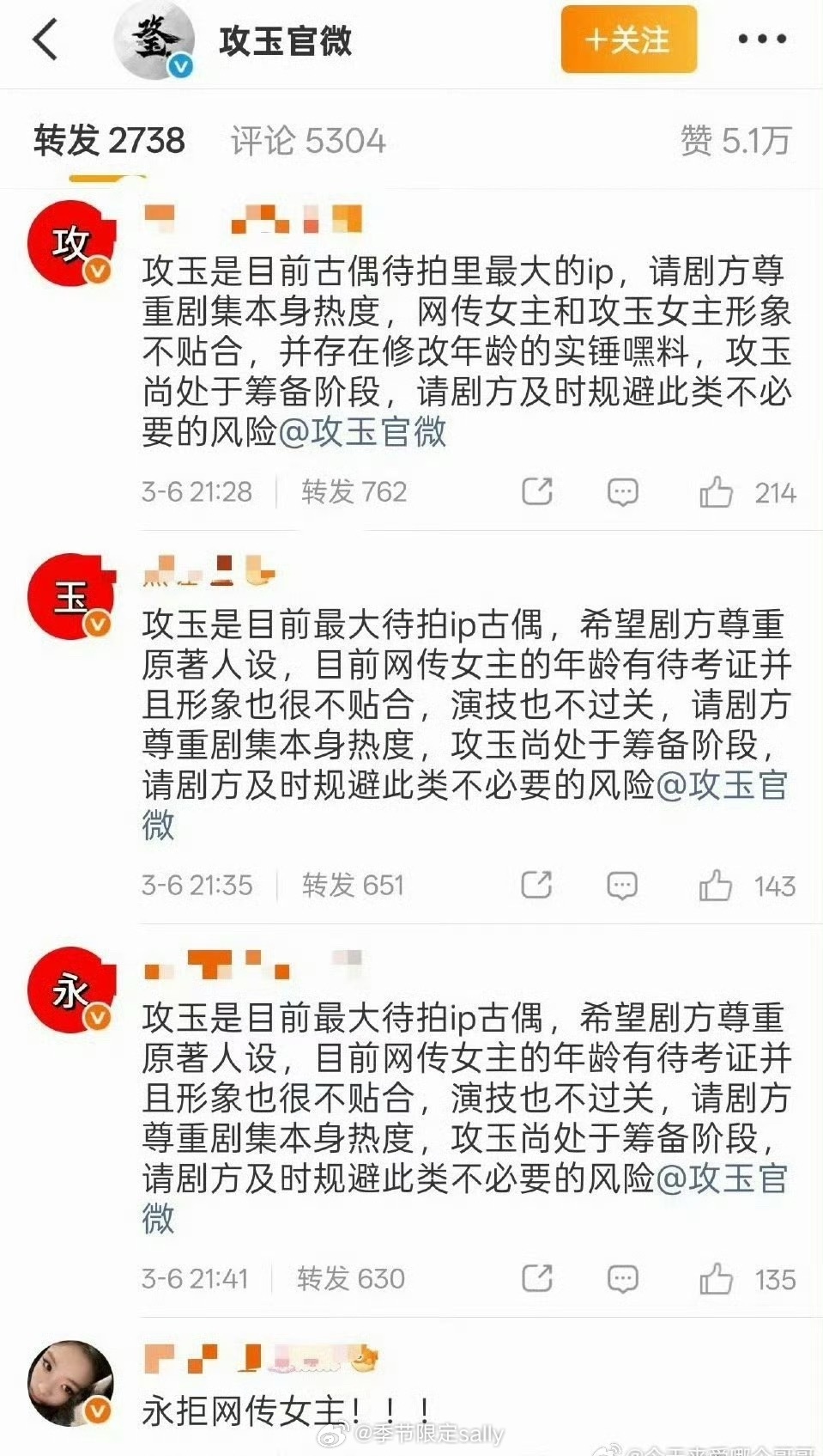 侯明昊粉丝攻玉官博排字,永拒网传女主