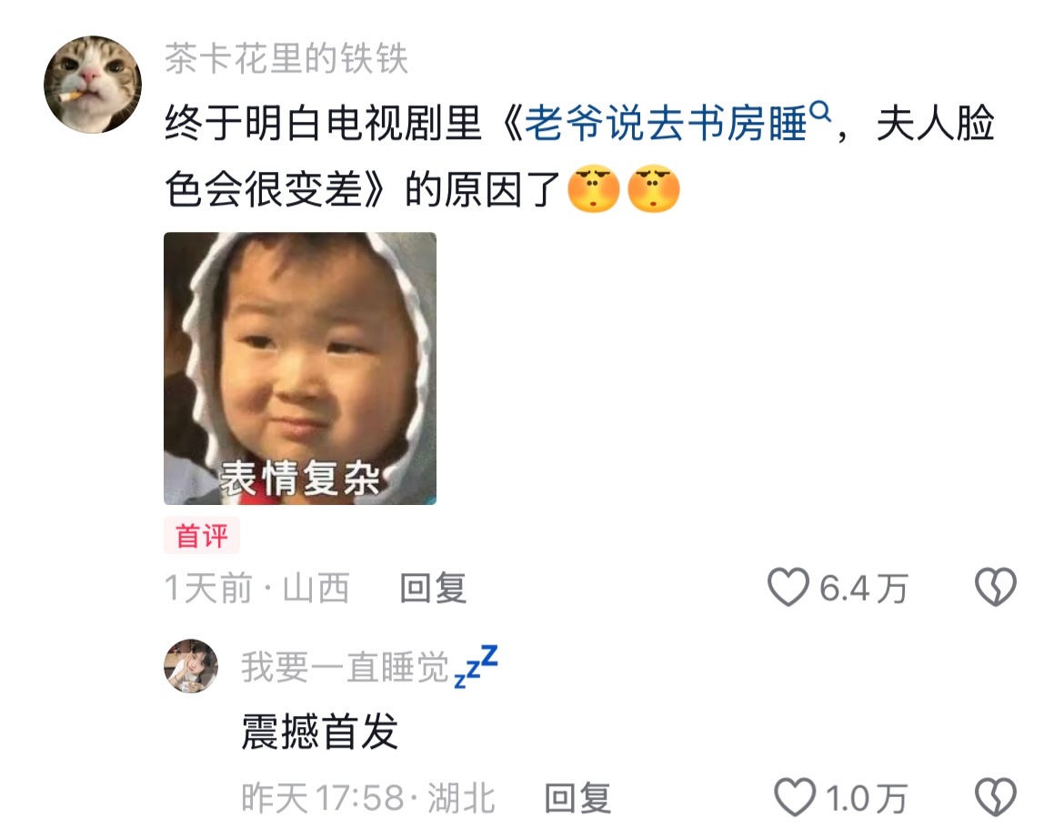 终于明白电视剧里老爷说去书房睡,夫人脸色会很变差的原因了🤣👌