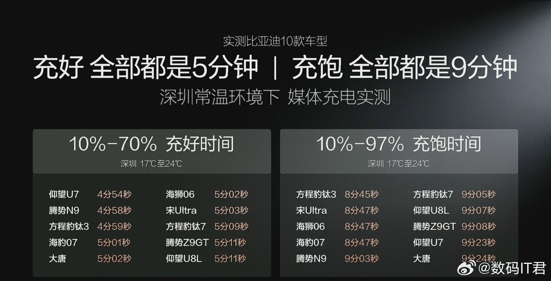 从比亚迪王朝海洋网到腾势、方程豹、仰望,看多品牌一起拉满测试。充电速度都快到让人根本来不及眨眼。