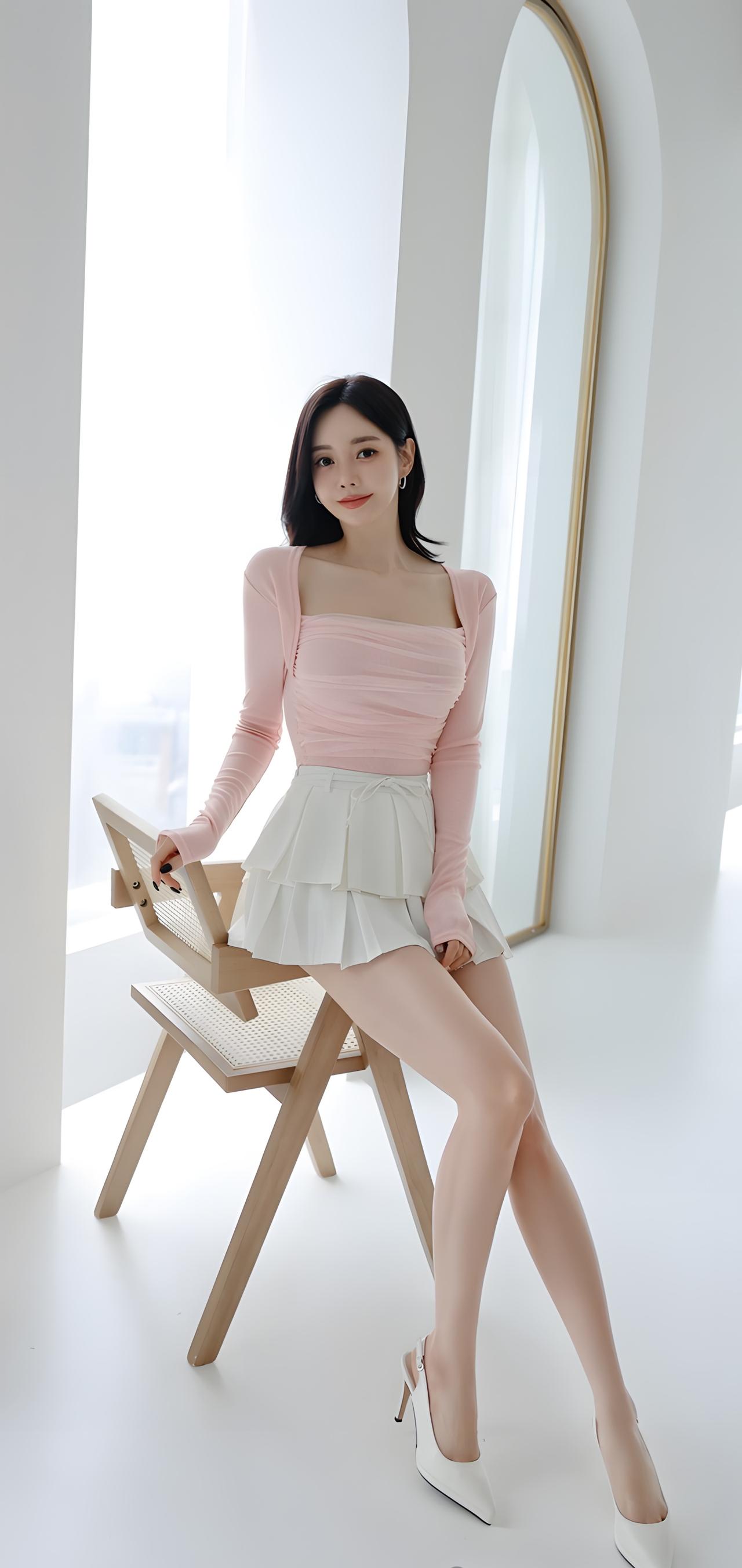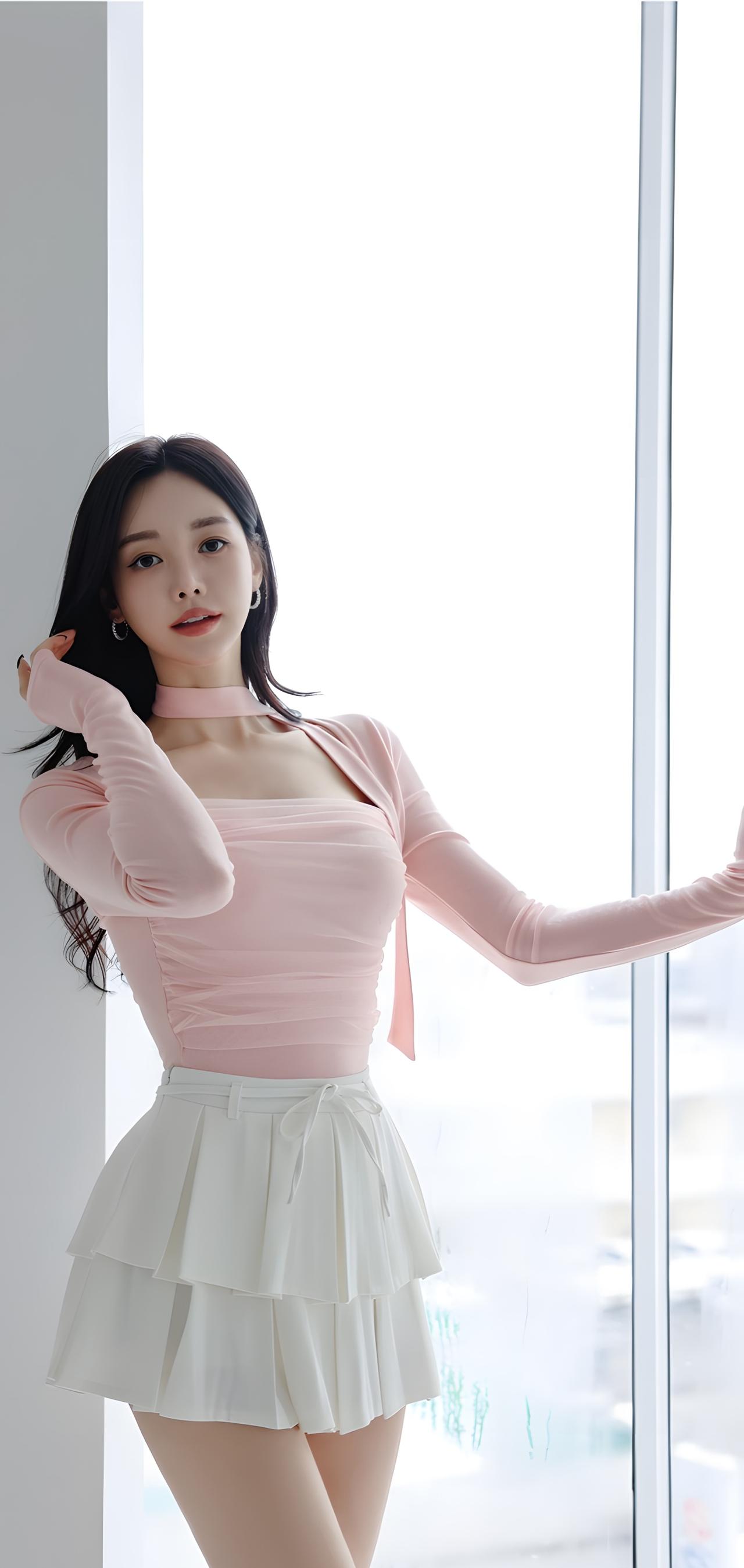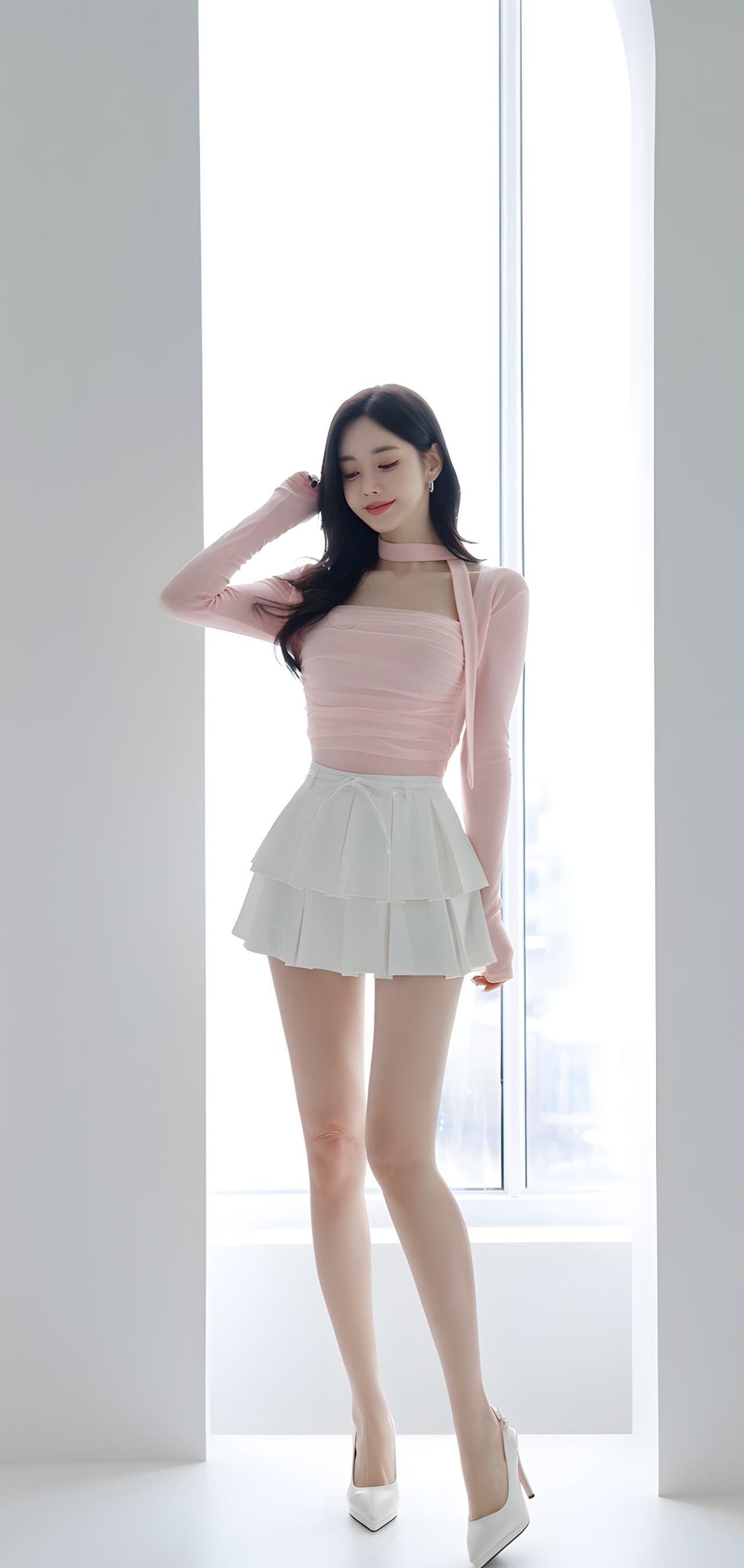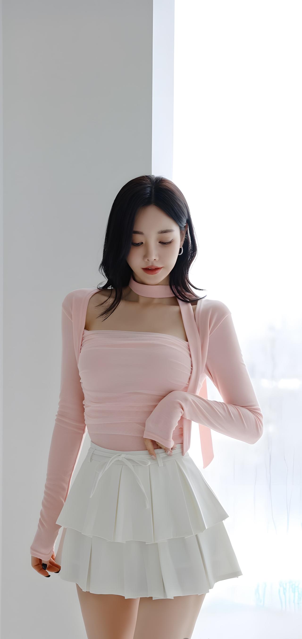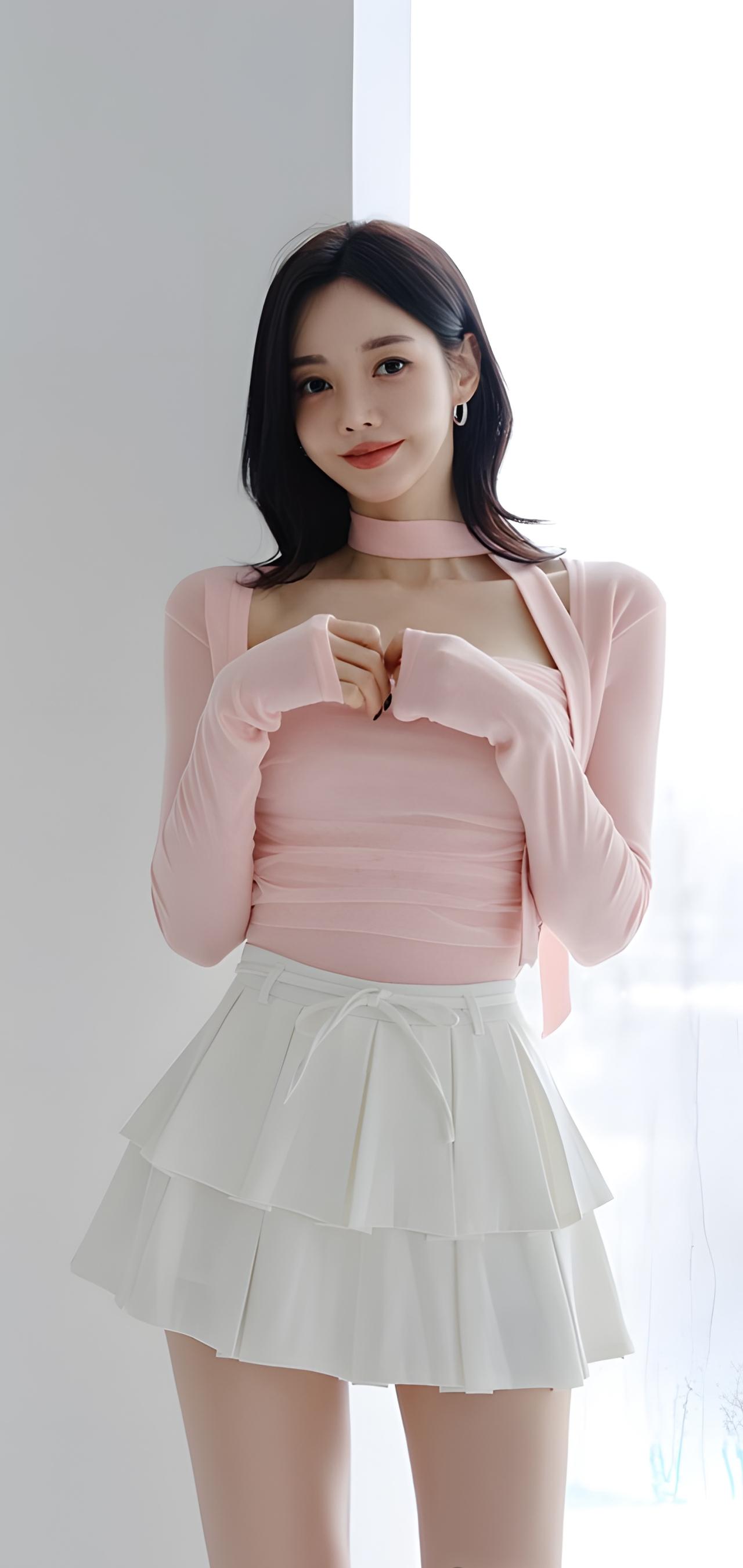 温柔甜美的粉色上衣搭配白色百褶裙,少女心满满!💕✨