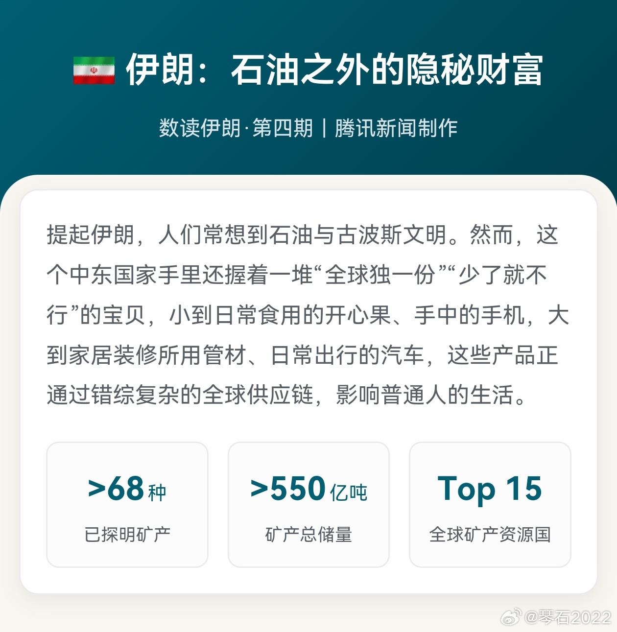 原来伊朗资源这么丰富啊伊朗看样子,以特朗普为代表的资本,打伊朗很正常!你别以为它只看重石油,你别以为它打伊朗是因为伊朗反美,你别以为它因为是鱿鱼要打伊朗。它们打的过程挣钱,打下来更挣钱。即使打不下来也是股民和投资者买单。其矿产和农产品与我们的工业需求非常契合,很可惜,伊朗想当初没有搭上我们的车。