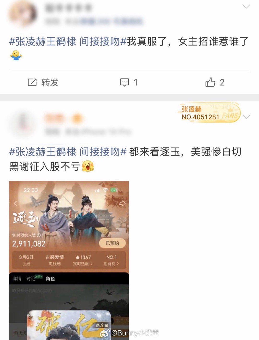 张凌赫王鹤棣 间接接吻谁想的主意,逐玉的剧宣是认真的吗……对谁都很不尊重啊