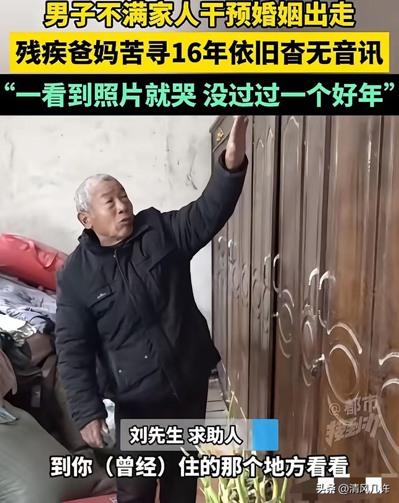“早知今日,何必当初!”河南郑州,20岁小伙处了个对象,小伙父母嫌弃女孩家太远,硬是棒打鸳鸯,将二人拆散了。小伙对父母心生怨恨,一气之下离家出走,这一走就是16年,从此杳无音讯。如今,其父母已经60多岁,双双身患残疾,他们思儿心切,常常拿着儿子的照片泪流不止,母亲眼睛已经哭成半瞎。邻居说:16年里,他们老两口吃饭都含着眼泪,日夜思念,太悲惨了!网友:这是老了,想儿子了!如果不是老了,身体不好了,还是不会想儿子。 离家的小伙名叫刘好举,当年他带着真心与平顶山的女孩确定恋爱关系,满心期待能得到家人的认可。 父母得知女方家不在本地,当场就给出了否定的态度,他们认定异地的恋情没有结果,还执意要给刘好举安排本地的相亲对象。 家里的沟通很快变成无休止的争吵,父母不肯退让半步,用亲情和道德不断施压,非要他彻底和女友断了联系。刘好举不愿放弃自己用心经营的感情,也无法接受人生大事被随意操控,情绪积攒到顶点后,他没有留下任何交代,独自离开了生活二十年的家。 刘好举走后彻底切断了和家里的所有联络方式,他不想再面对家人的指责,也不愿回头触碰那段让他窒息的经历。 他辗转在不同的城市谋生,做着最基础的体力工作,日子过得安稳却始终不愿和老家产生任何交集。他刻意避开所有可能遇到熟人的场合,也从不主动打听家里的情况,把自己完全隔绝在原生家庭之外,用距离守护内心最后的坚持。 家里的刘进安夫妇在儿子离开后,很快就被愧疚和思念包裹。两人本就身患残疾,刘进安腿部行动不便,日常走路都要依靠辅助,母亲的视力本就不佳,长期的痛哭让眼部状况持续恶化,最终几乎失去正常视物的能力。 他们没有能力打理家里的琐事,刘好举当年的房间一直保持着原样,为婚事准备的全新家具无人使用,表面落满灰尘还结了层层蛛网。老两口每天都会走进这个房间,用手抚摸着熟悉的物件,嘴里反复念叨着儿子的名字,心里的悔恨一天比一天深重。 16年的时间里,寻子成了两位老人生活的全部重心。他们拖着病弱的身体多次前往派出所报案,主动采集DNA信息录入寻亲系统,不放过任何一条有关儿子的线索。 他们还跟着亲友三次远赴上海,根据零散的身份信息四处打听,每一次出发都抱着满满的希望,每一次返程都只剩下更深的失落。因为身体条件受限,他们没办法长时间在外奔波,只能委托邻里帮忙留意消息,守在家里等待奇迹出现。 邻里们全程看着这个家的变故,也见证着两位老人的煎熬。 他们说老两口这些年就没有好好吃过一顿饭,端起饭碗就会想起离家的儿子,眼泪不自觉地掉进碗里。逢年过节是家里最难熬的时候,别人家都是团圆热闹的场景,这个家只有冷清和沉默,老两口对着空座位发呆,连简单的饭菜都难以下咽。 母亲整日抱着儿子的旧照片,看不清画面也不愿放下,哭到无力才肯停下,父亲整夜整夜无法入睡,闭眼就是儿子年少时的模样,睁眼只剩空荡荡的屋子。 这件事在网络上引发了大量讨论,不同的声音折射出不同的立场。有人心疼两位老人的晚年处境,觉得他们已经为当年的偏执承受了足够多的痛苦,希望刘好举能放下过往的芥蒂,回家见一见年迈的父母。 也有网友站在刘好举的角度,认为当年父母强行干涉婚恋的做法,是对成年子女独立人格的不尊重,16年的隔绝是他对原生家庭控制欲的无声反抗,大家更觉得老人的悔恨,是晚年身体衰弱、无人照料后的现实考量,而非真正理解了对儿子造成的伤害。 这段长达16年的亲情裂痕,戳中了很多中国式家庭的核心矛盾。 不少父母习惯站在自己的认知里,用“为你好”的名义替子女做所有决定,从婚恋选择到人生规划都要牢牢掌控,却忽略了子女成年后有独立选择的权利,更意识到强硬的干涉只会把最亲的人推远。等到自己老去体弱,才明白尊重的意义,可已经造成的伤害和错过的时光,再也没有办法弥补。 刘好举的离家是年轻气盛的反抗,也是对不被尊重的坚决回应。 两位老人16年的煎熬,是固执带来的后果,也是迟来的亲情觉醒。亲情里从来没有绝对的对错,只有理解与隔阂的选择,控制与服从换不来长久的和睦,尊重与包容才能守住家人之间的温暖。 这段真实的经历也在提醒着每一个人,亲情经不起漫长的消耗,别让固执毁掉最珍贵的陪伴,别等到失去后才懂得珍惜。 各位读者你们怎么看?欢迎在评论区讨论。