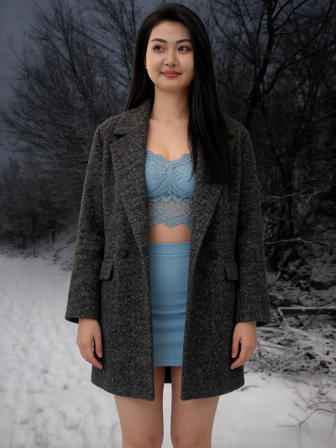雪还没有完全退场, 风还带着一点清寒的余味, 你却已经站成了 冬天里最温柔的春光。 ~ 檐角的冰棱在悄悄融化, 滴落成一串无声的诗行, 阳光穿过薄云, 轻轻落在你微垂的眉眼上。 没有喧嚣,没有张扬, 只有一种安静, 像初开的花,不慌不忙。 ~ 你的身影, 是冷色世界里的一抹暖, 是灰白天地间的一点亮。 长发被风轻轻拂动, 温柔得像月光流淌, 指尖轻拢, 便拢住了一整个冬天的晴朗。 ~ 不必刻意寻找春天, 春天早已藏在你的眼底, 不必等待花开, 花开早已落在你的笑意。 寒意再深,也抵不过你眼底的温软, 风雪再冷,也吹不散你身上的光亮。 原来冬日最动人的春光, 不是花开,不是暖阳, 而是你静静站在那里, 便让整个冬天,都有了温柔的方向。